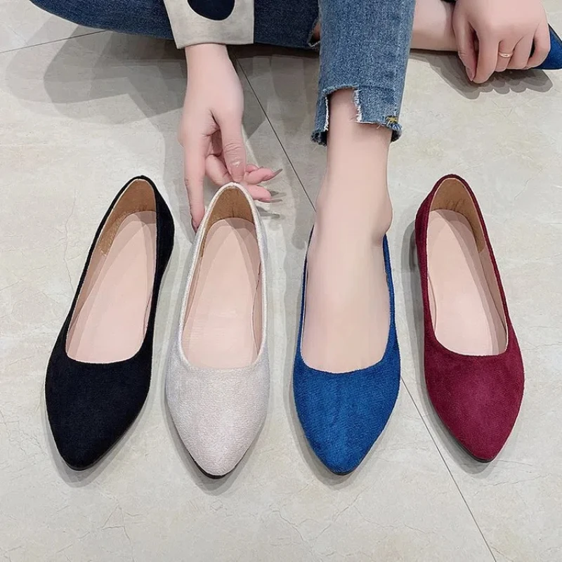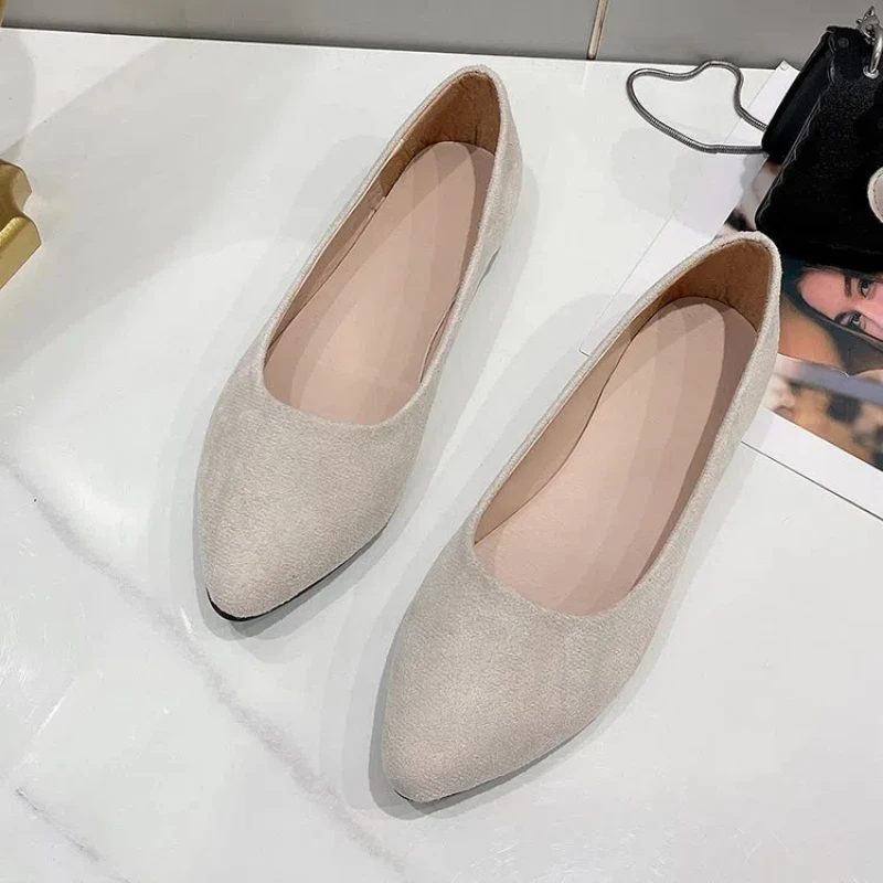 New York’s Fashion Pointed Toe Simple Women’s Shoes Velvet Large Size Bean Bean Comfortable Lightweight Slip-On Work Shoes