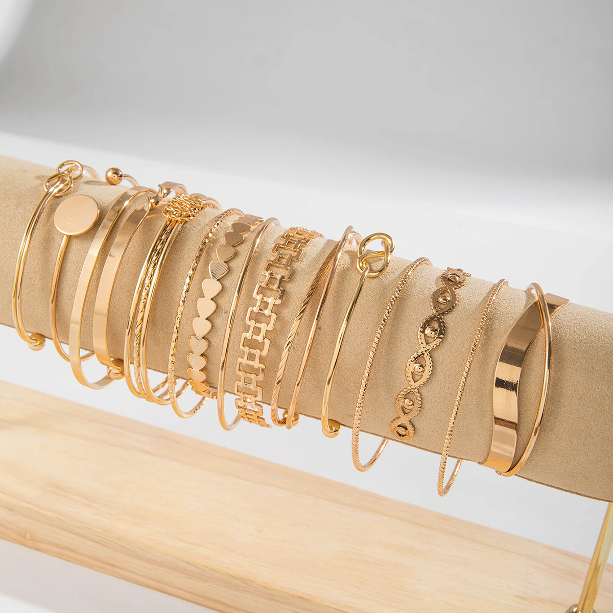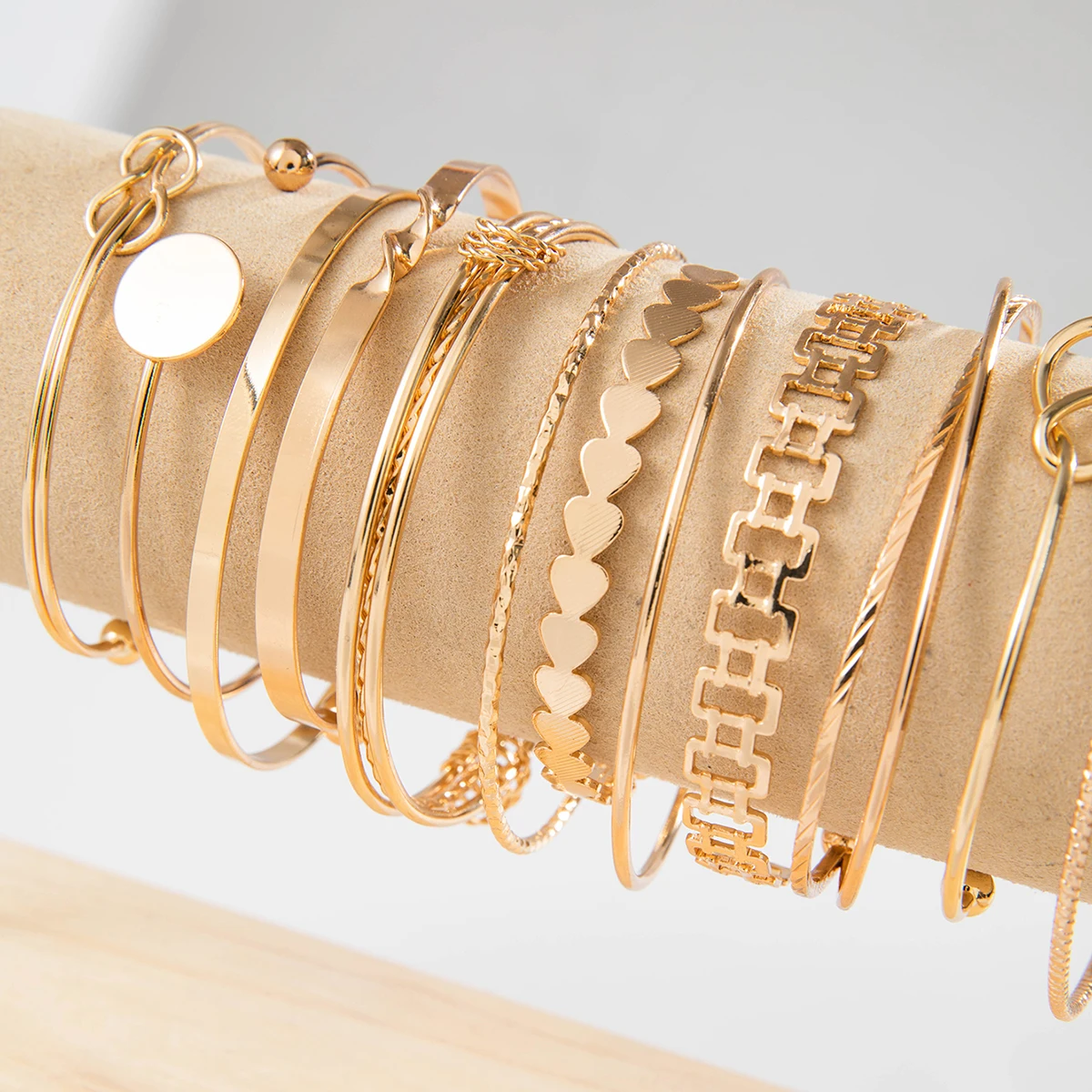 New York’s Fashion Punk Simple Threaded Thick Chain Link Bracelets Set For Women Gold Color Alloy Metal Bracelet Fashion Party Jewelry