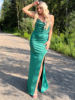 New York’s Fashion Red Wedding Party Dress Sleeveless Spaghetti Strap V Neck Green Split Pleated Blackless Long Mermaid Evening Prom Gown