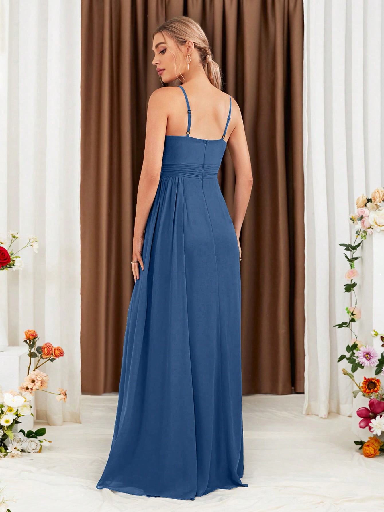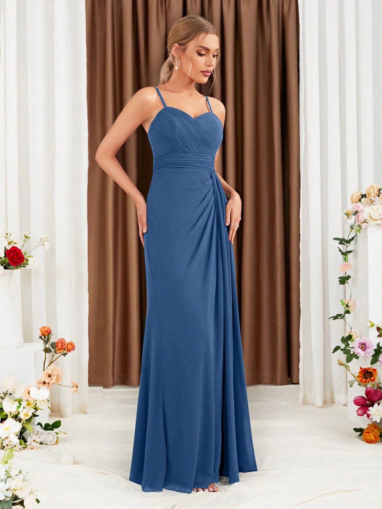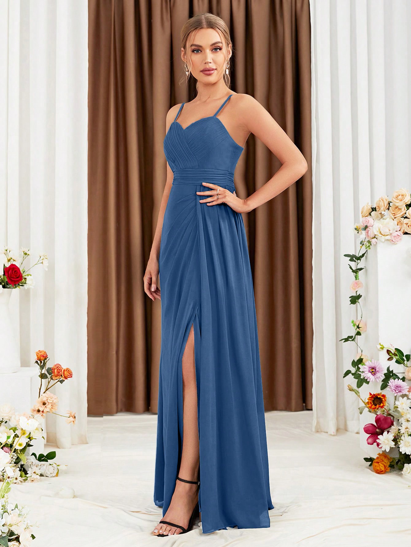 New York’s Fashion Ruched Split Thigh Chiffon Bridesmaid Dress