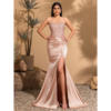 New York’s fashion Satin pleated floor-length sequined patchwork strapless dress with back ties
