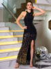 New York’s Fashion Sexy Backless Shiny Sequined Evening Maxi Party Gown Front Slit Slim Fit Sleeveless Prom Long Graduation Night Out Dress