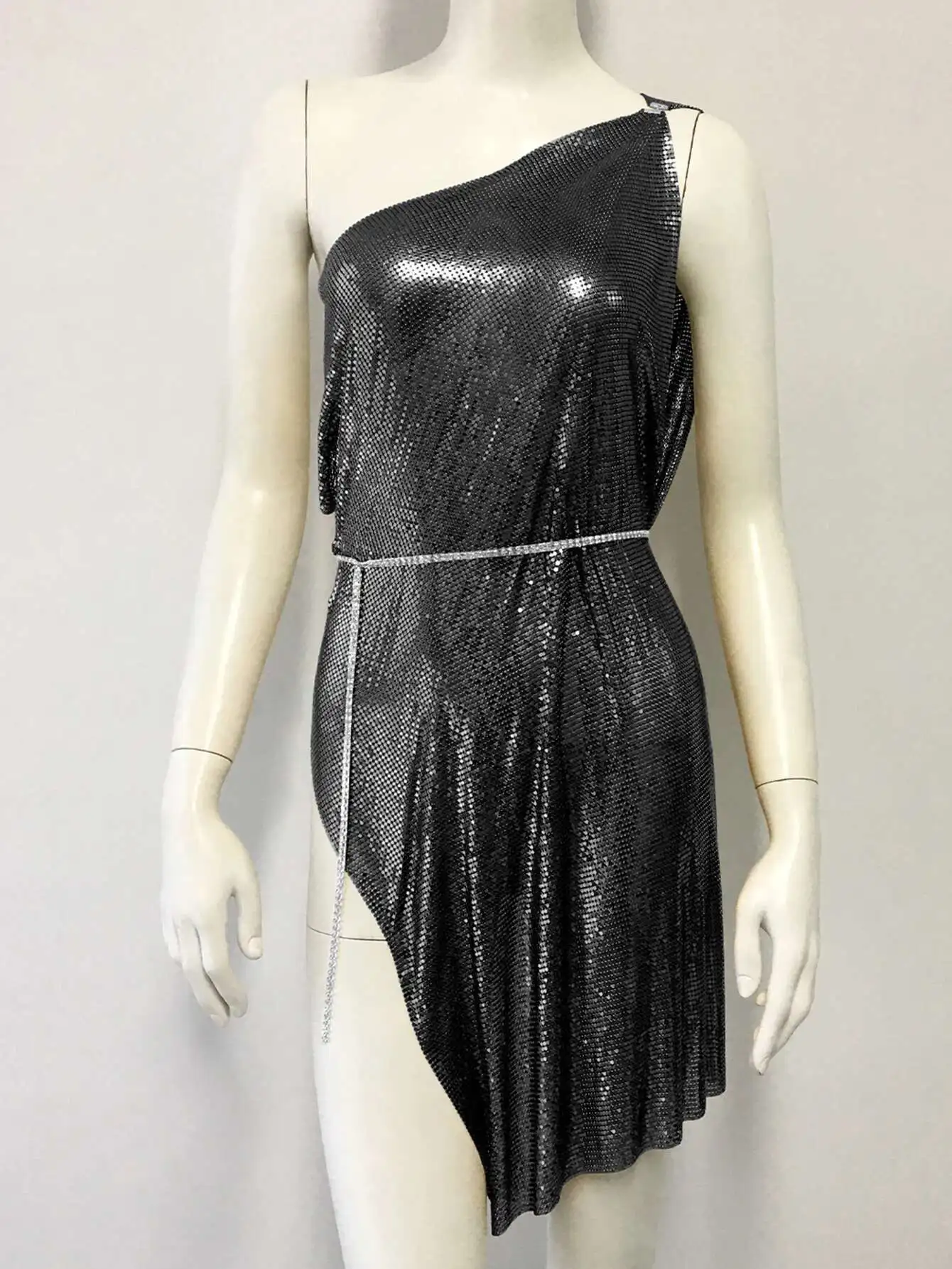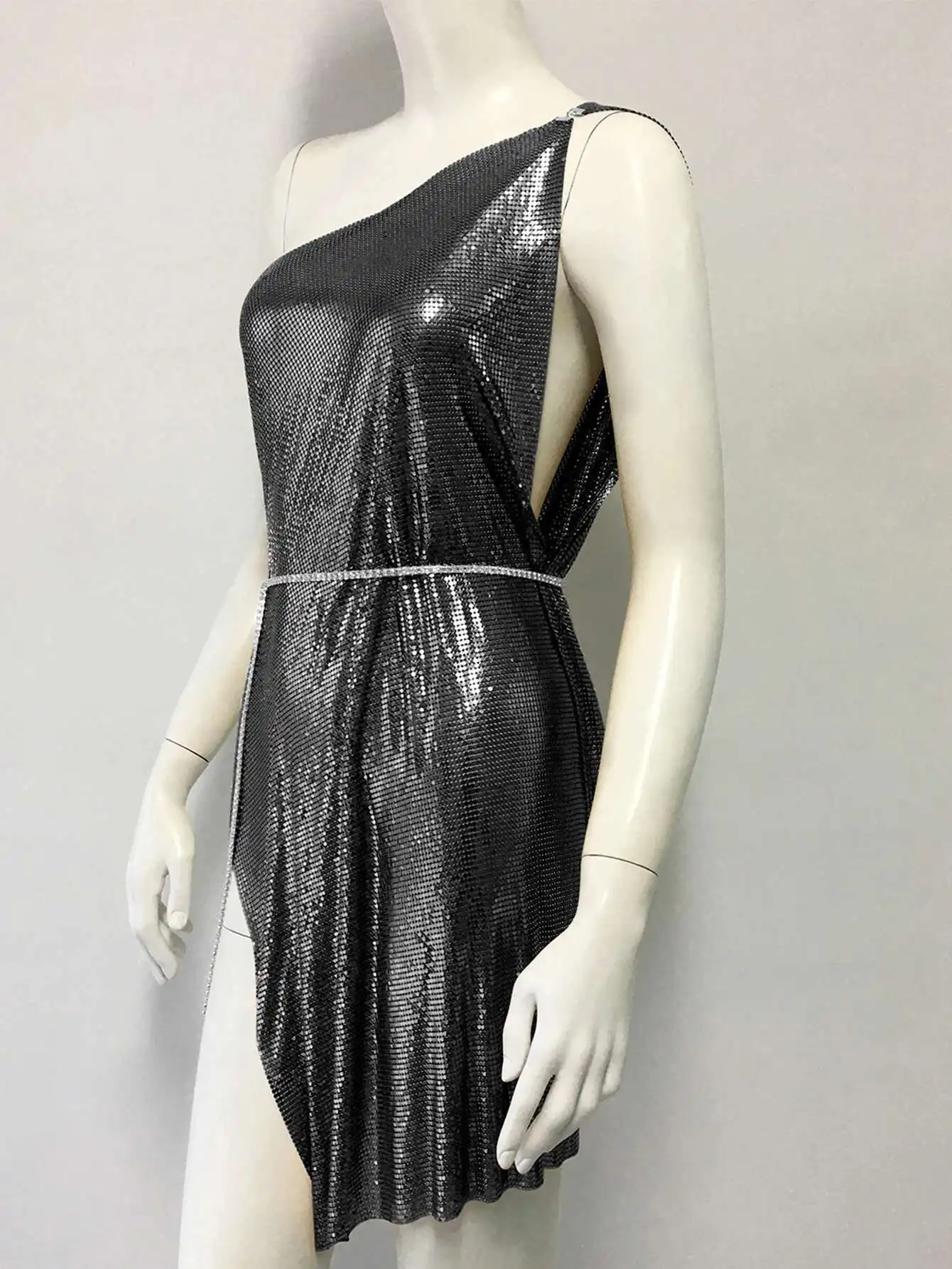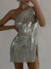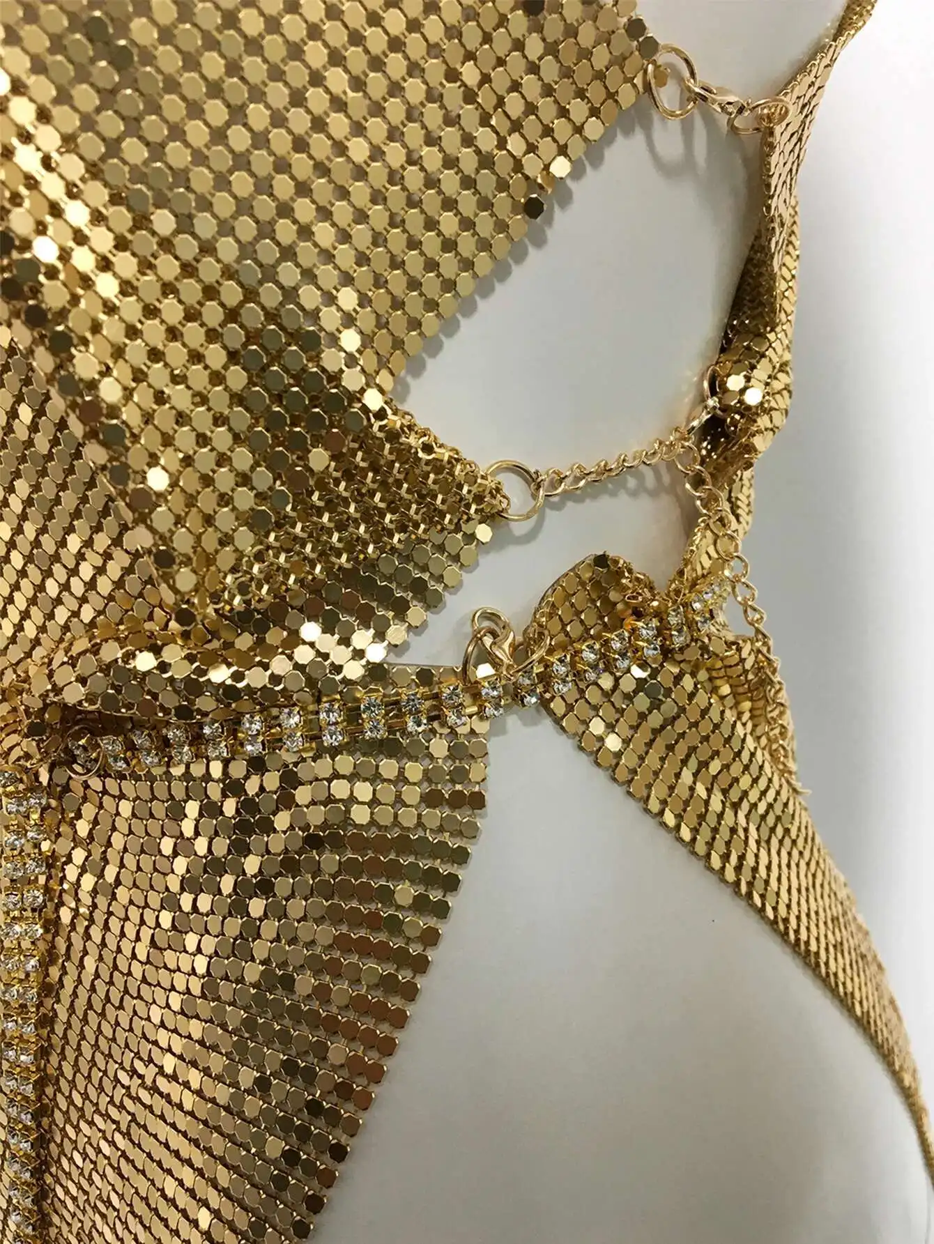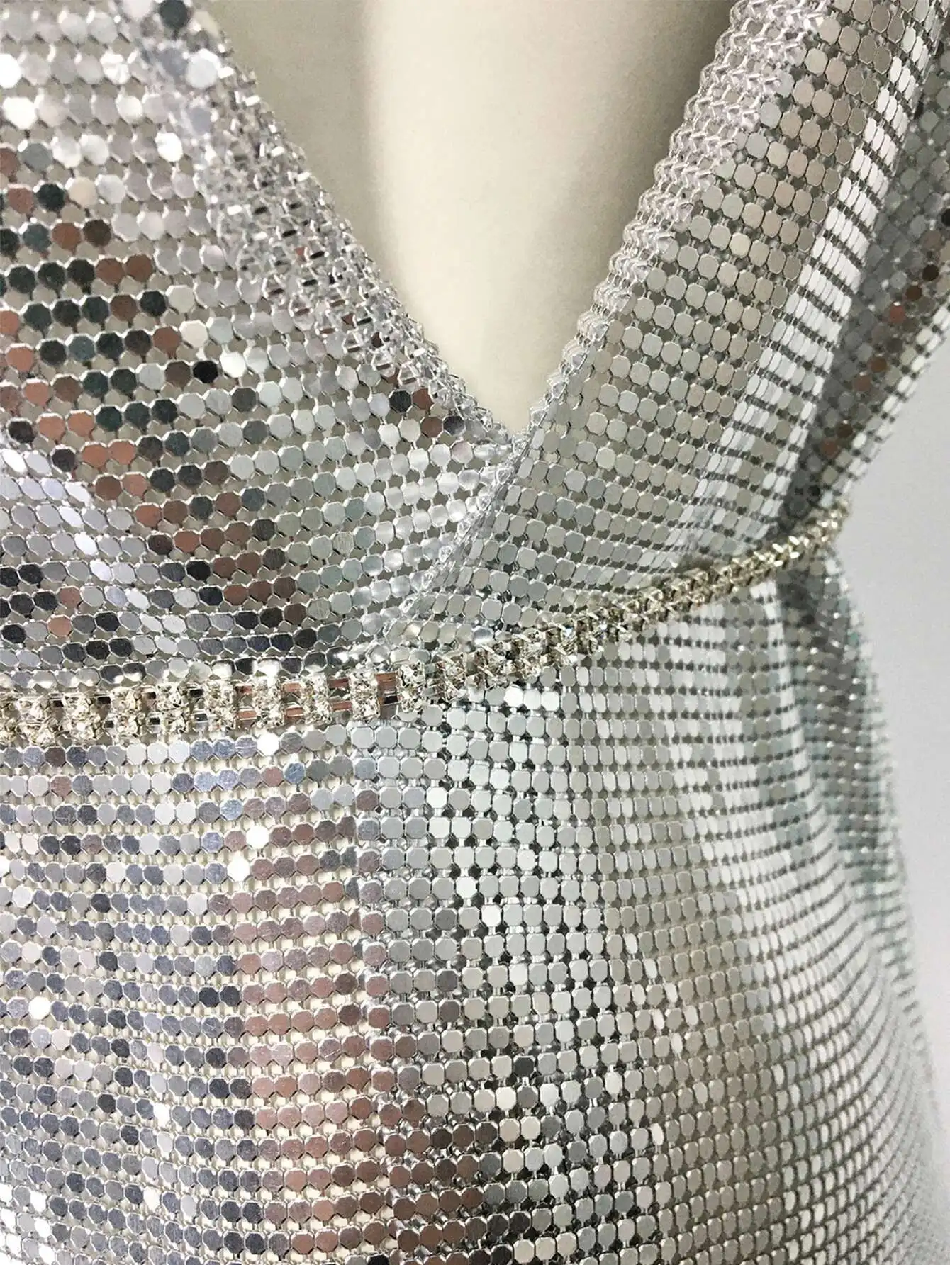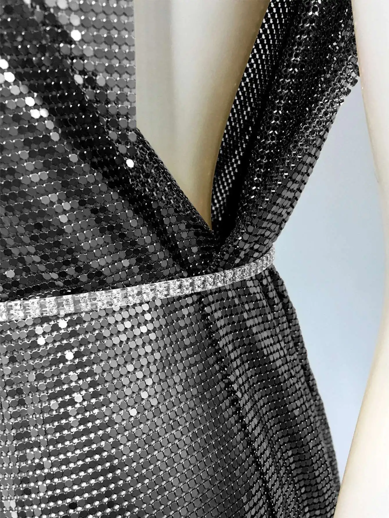 Sexy black metal sequin summer dress women backless short evening party dresses woman clothing gold club birthday dress vestidos