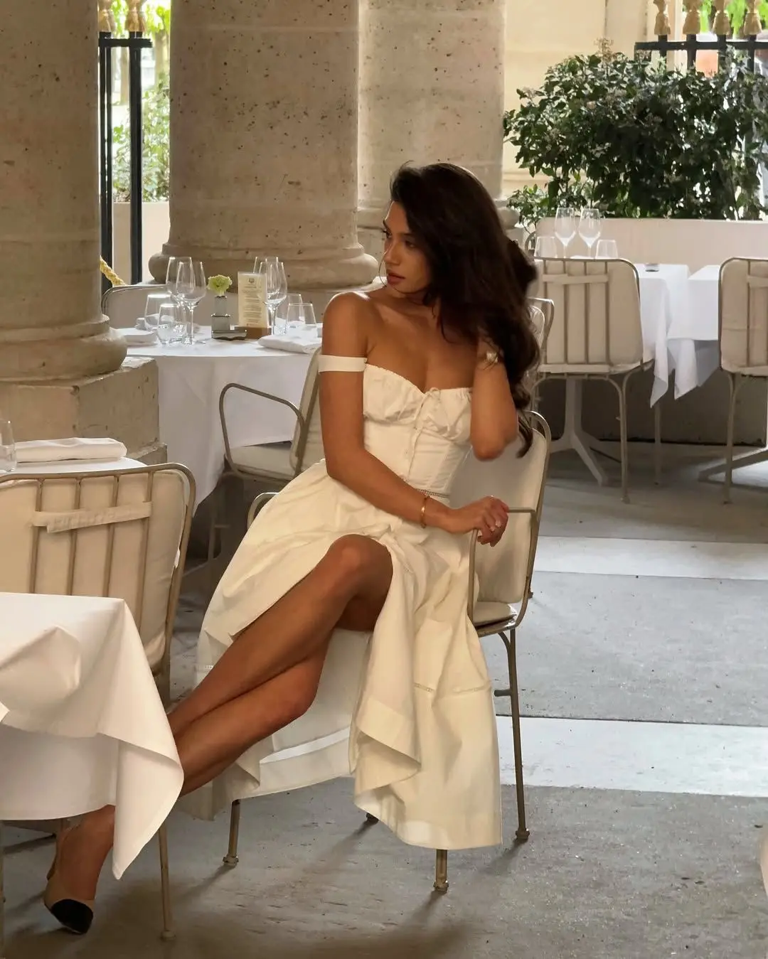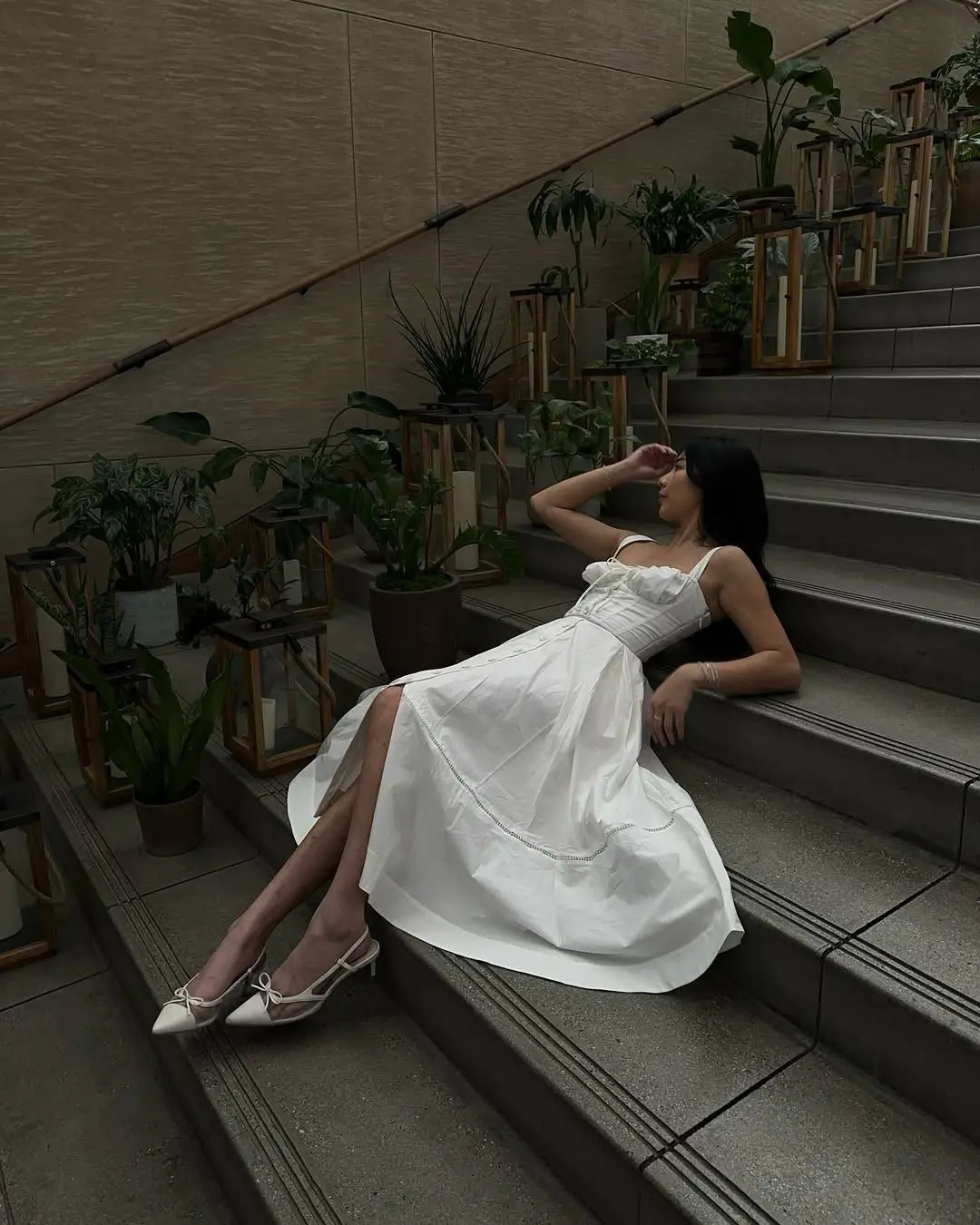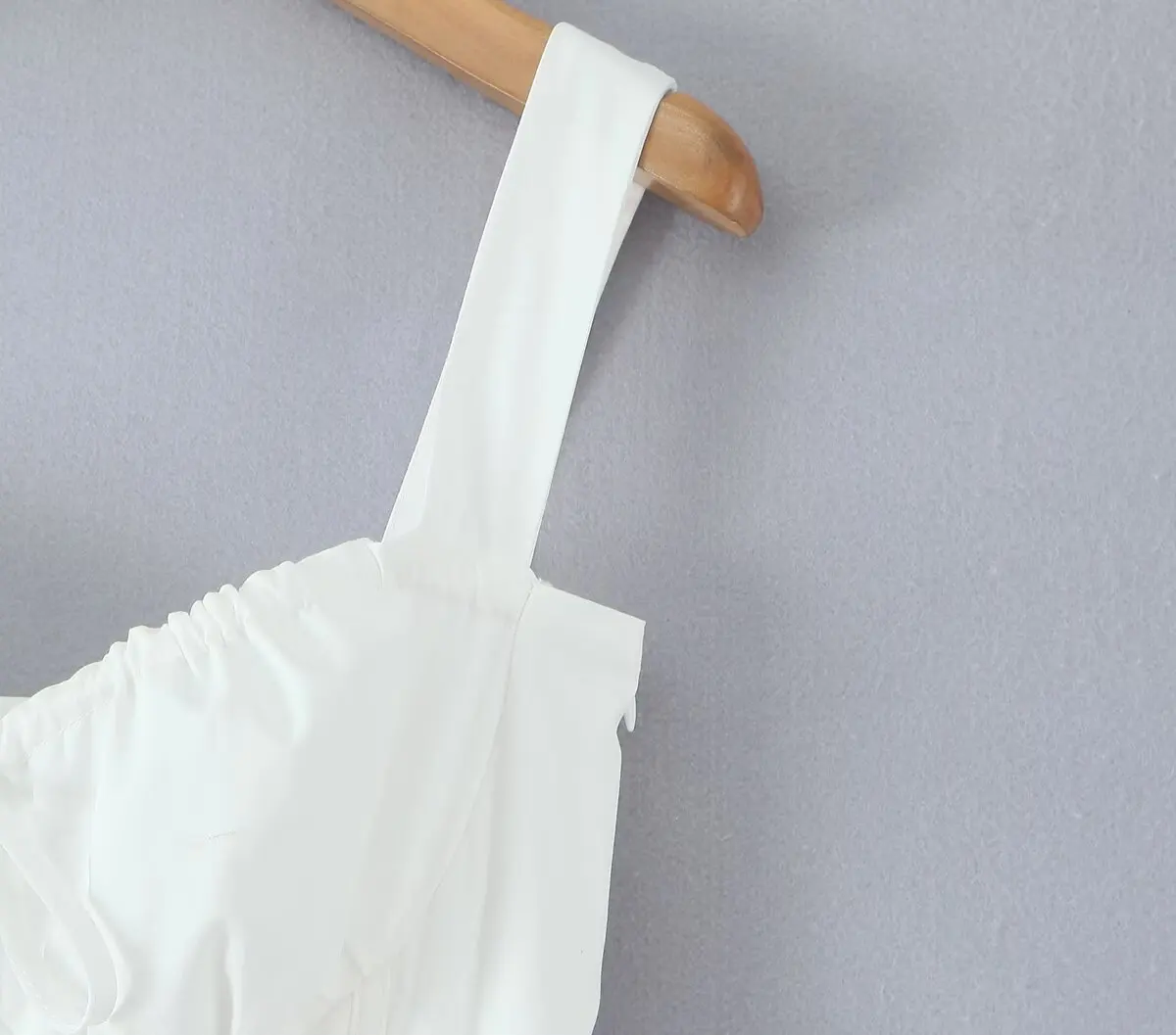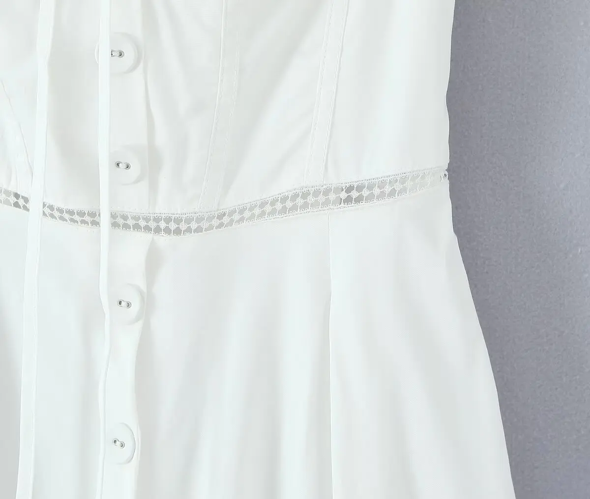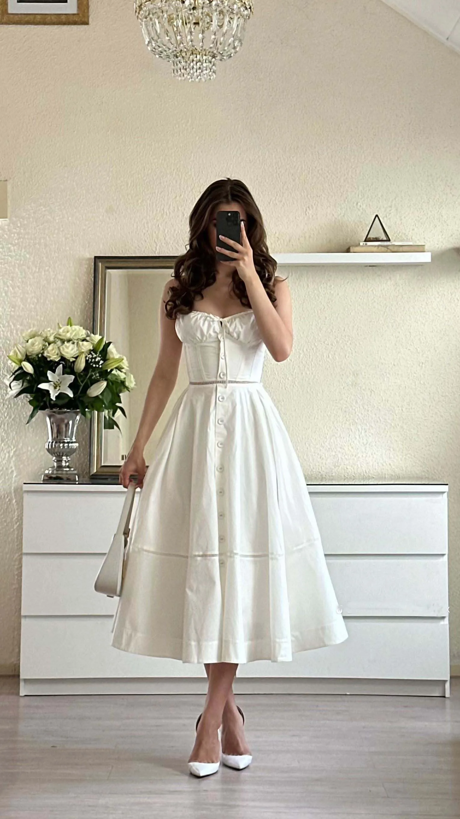 New York’s Fashion Sexy Lace Up Bandage Back Elegant White Sling Dress Women Front Button A-line Cotton Corset Style Summer Dress Midi Robe