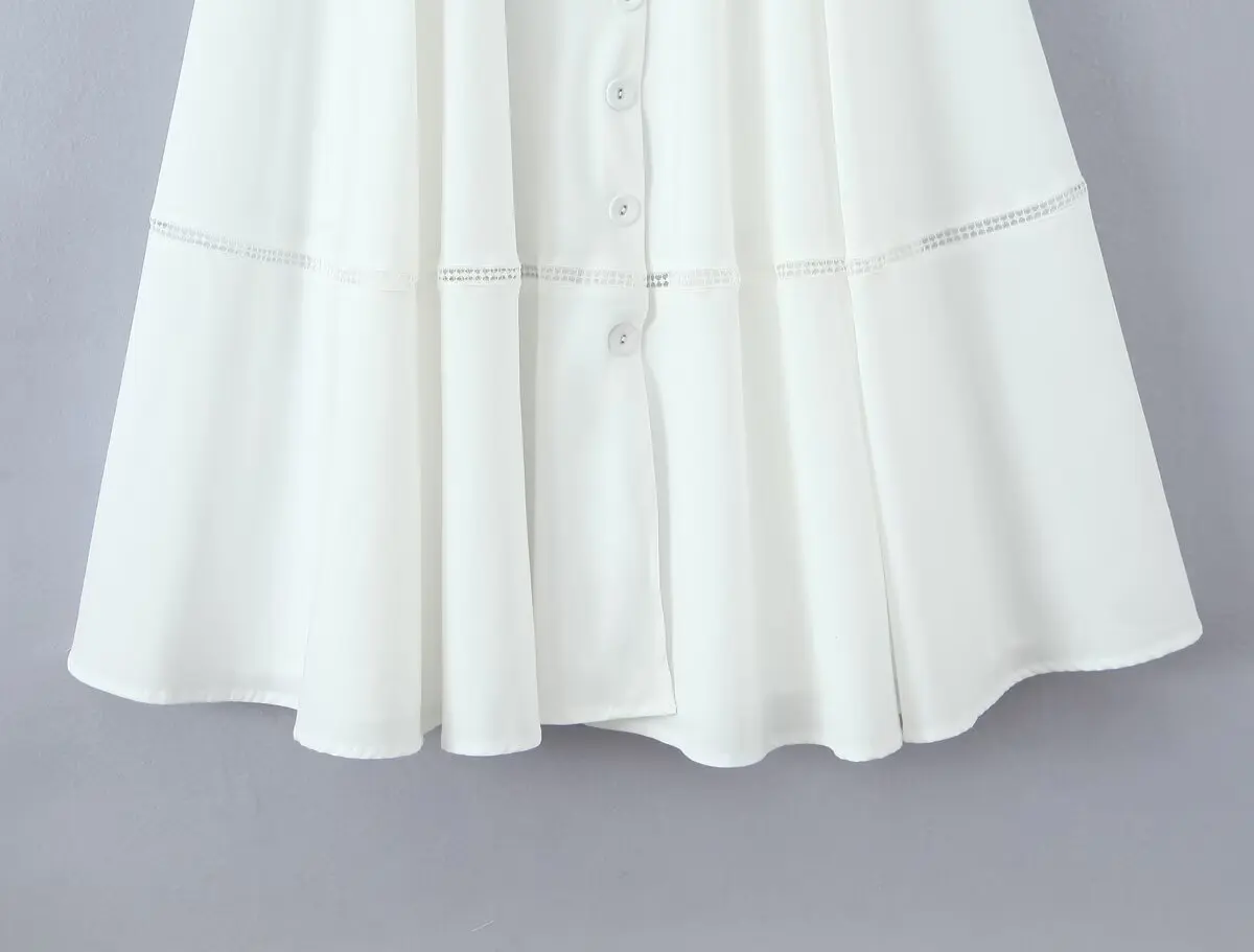 New York’s Fashion Sexy Lace Up Bandage Back Elegant White Sling Dress Women Front Button A-line