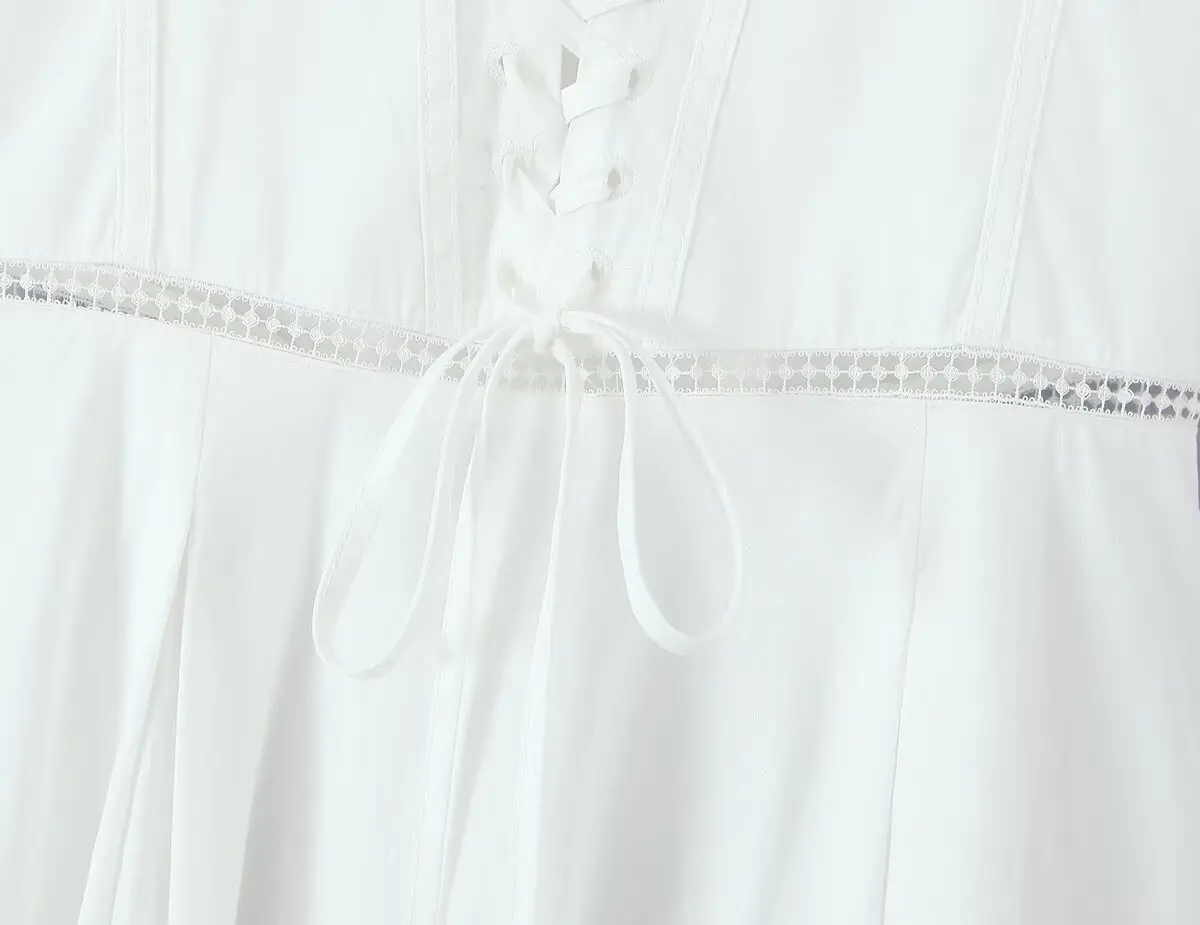 • Sexy Lace Up Bandage Back Elegant White Sling Dress