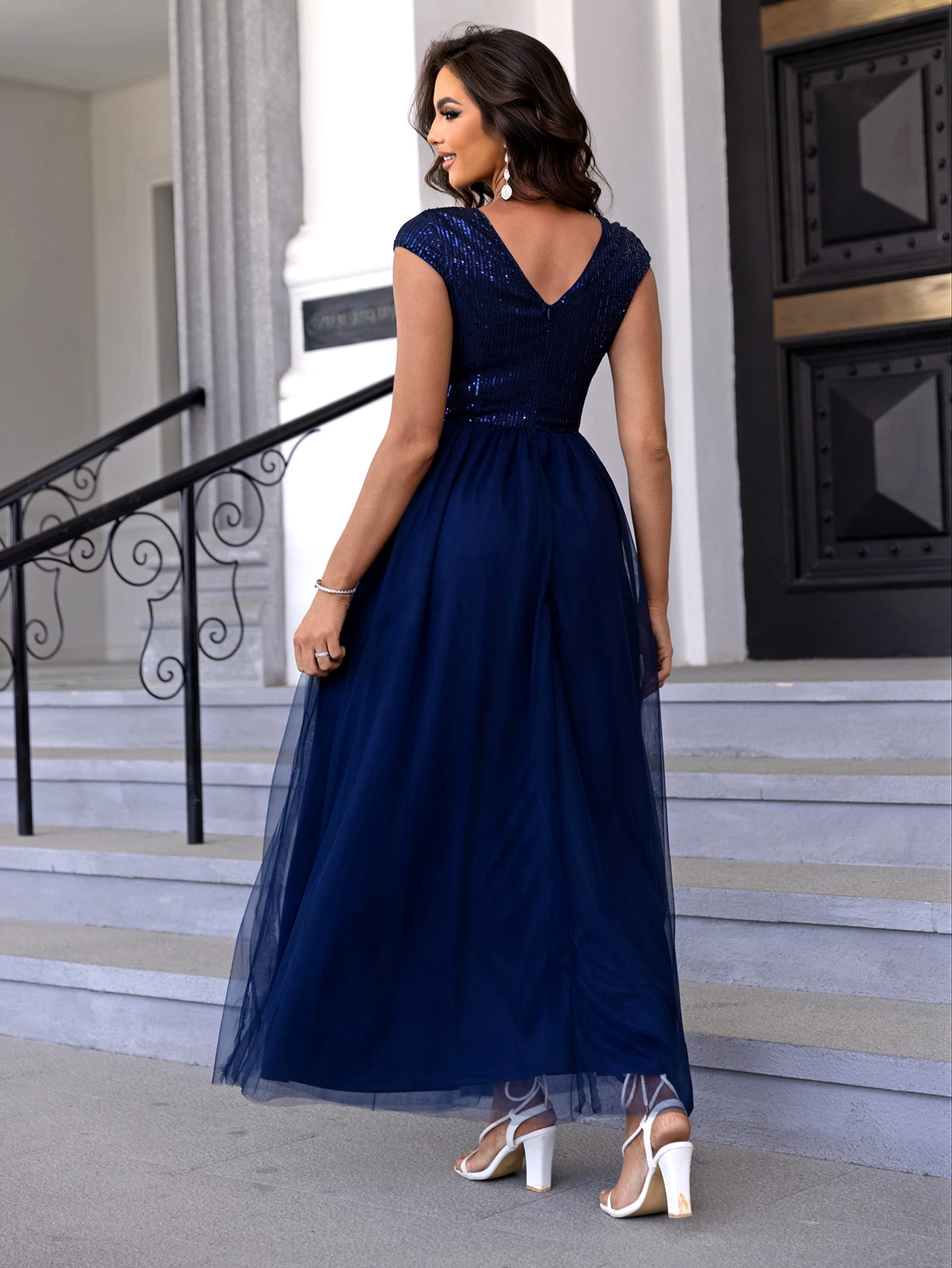 New York’s Fashion Sexy Prom Sequin Mesh Evening Party Dress Backless Bodycon Elegant Long Dress A-Line Wedding maxi Dress Gown