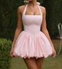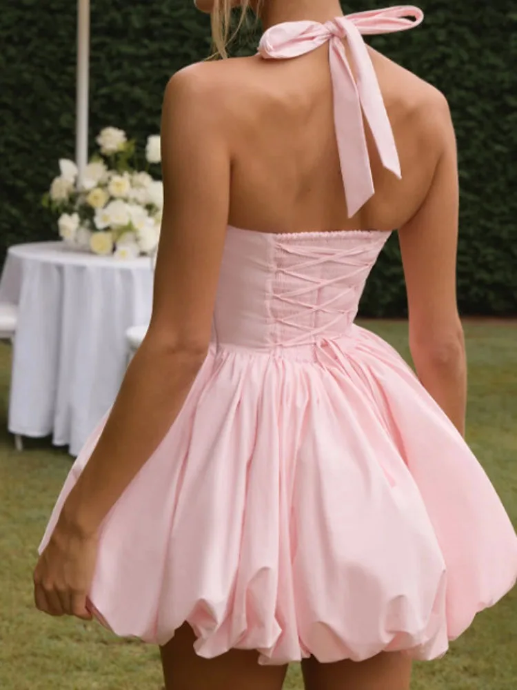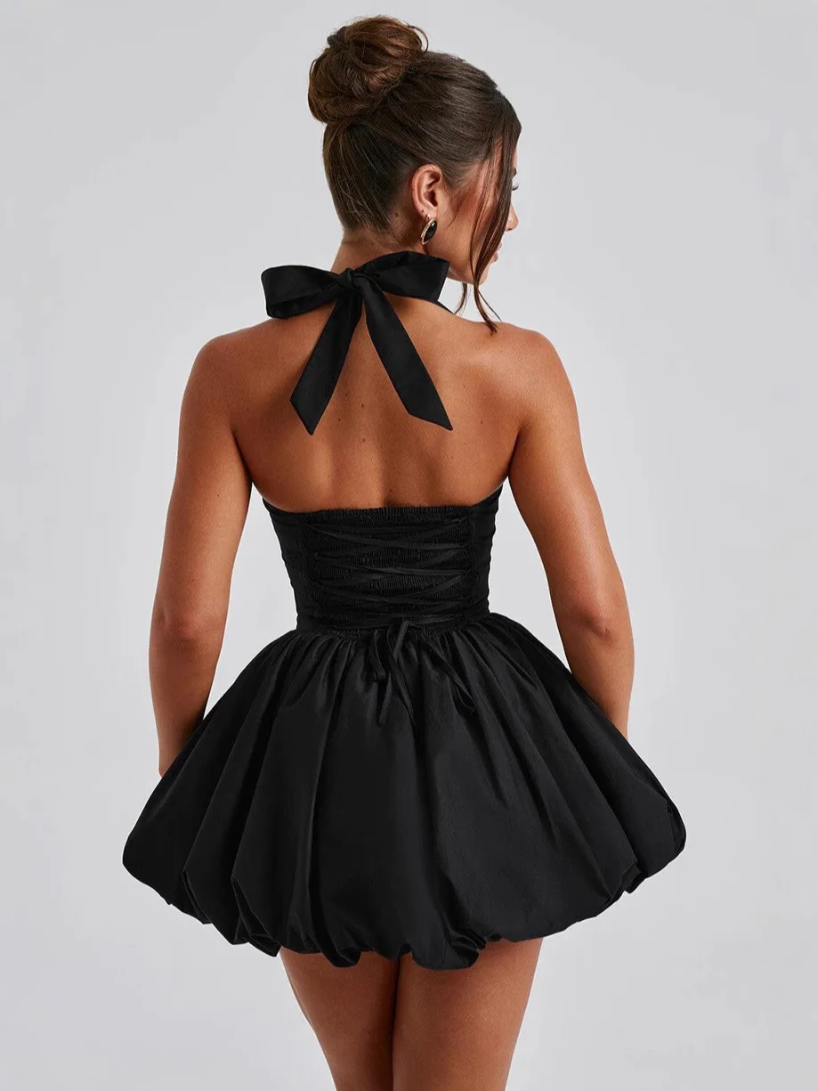 New York’s Fashion Sexy Solid Sleeveless Backless Halter Short Skirt Fashion Bow High Waist Slim A-line Dresses Summer Evening Party Vestidos