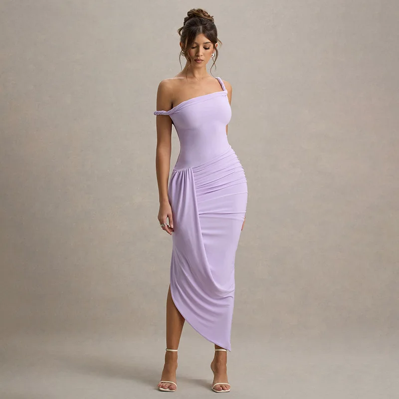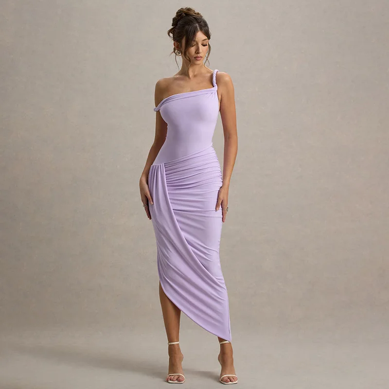 New York’s Fashion Solid Color Irregular Dress Women Sexy Mesh Backless Bodycon Dress Autumn New Party Club Evening Dress 2025