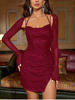 New York’s Fashion Solid Sequins Long Sleeve Mini Dress For Women Sexy Backless Split Ruched Mesh Dresses Party Evening Short Vetidos Femme