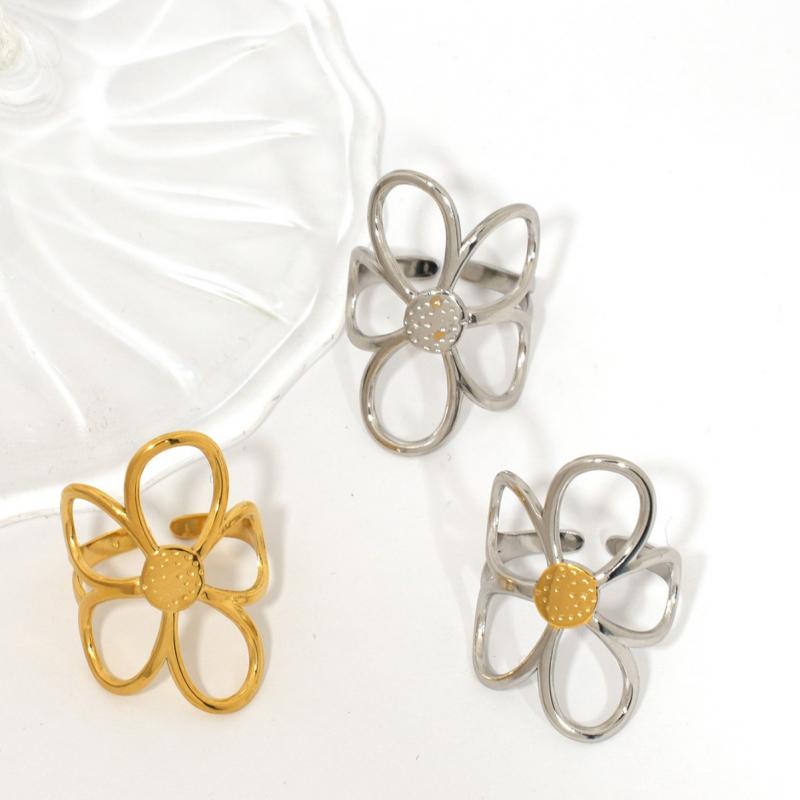 New York’s Fashion Stainless Steel Hollow Daisy Flower Rings for Women Simple Gold Silver Color Open Ring Anti Allergic Rust Proof Stylish Jewelry