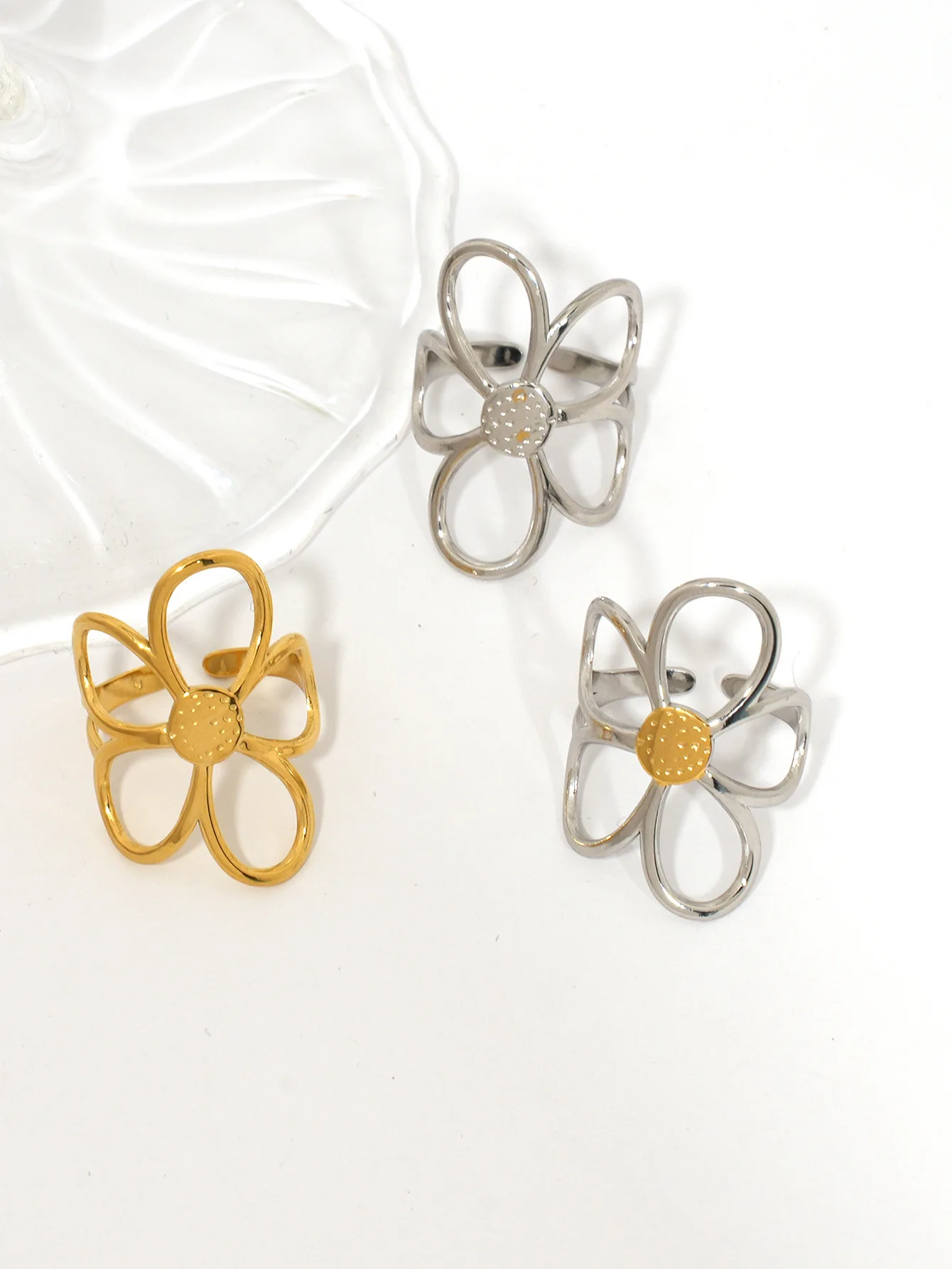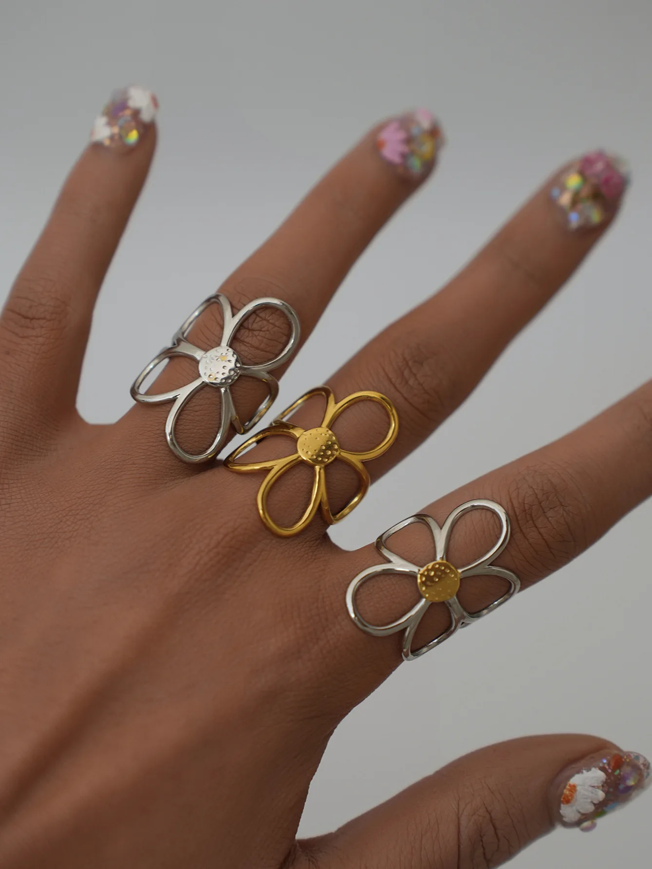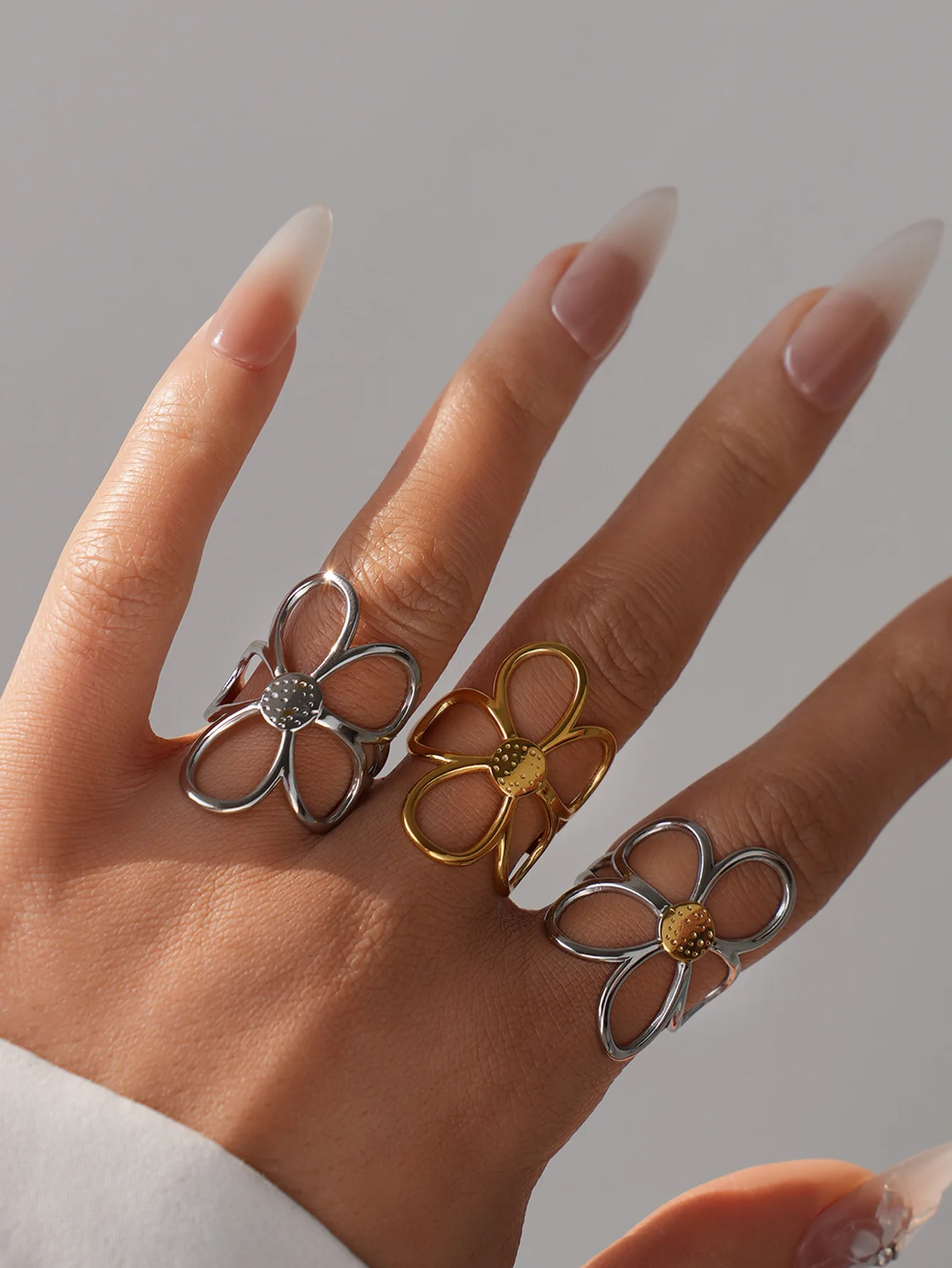 New York’s Fashion Stainless Steel Hollow Daisy Flower Rings for Women Simple Gold Silver Color Open Ring Anti Allergic Rust Proof Stylish Jewelry