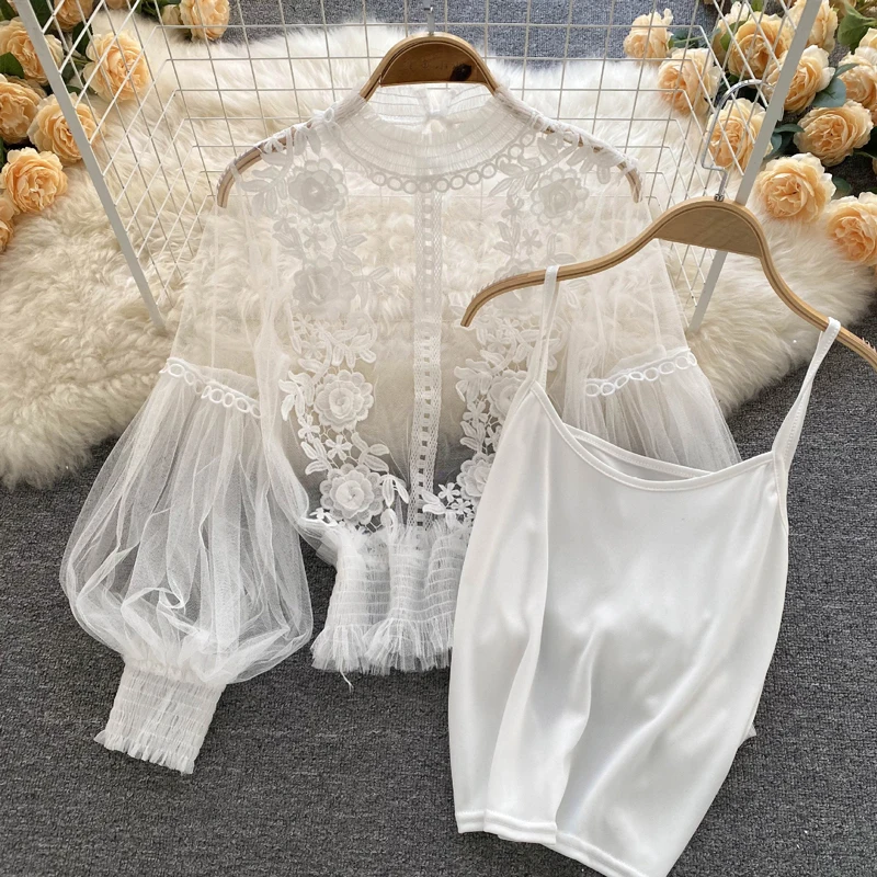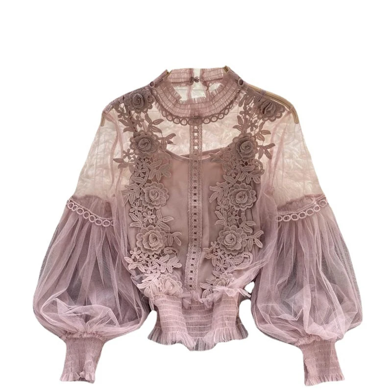 New York’s Fashion Summer Elegant Lace Blouses Korean Style Women’s Clothing Casual Long Sleeve Tops Blusas Feminina Elegante Estilosa