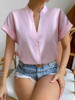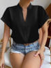 New York’s Fashion Summer New V-neck Pullover Short Sleeved Female Solid Color Casual Shirt Women’s Clothing 2024 Button Office Lady Blouse Tops