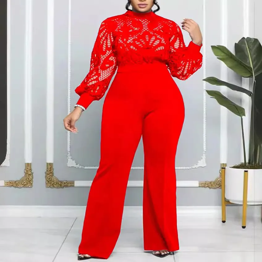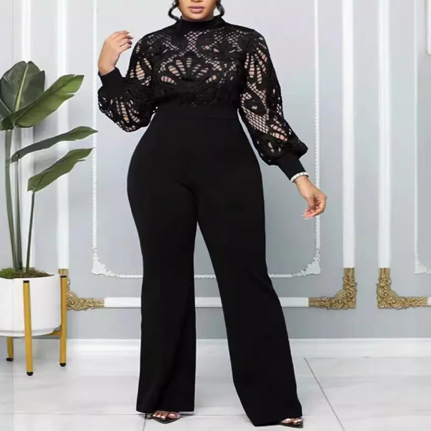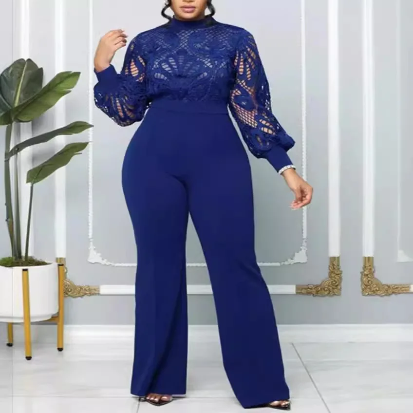 New York’s Fashion Temperament commuter Slim women’s plus size dress mesh lace lace casual jumpsuit trousers