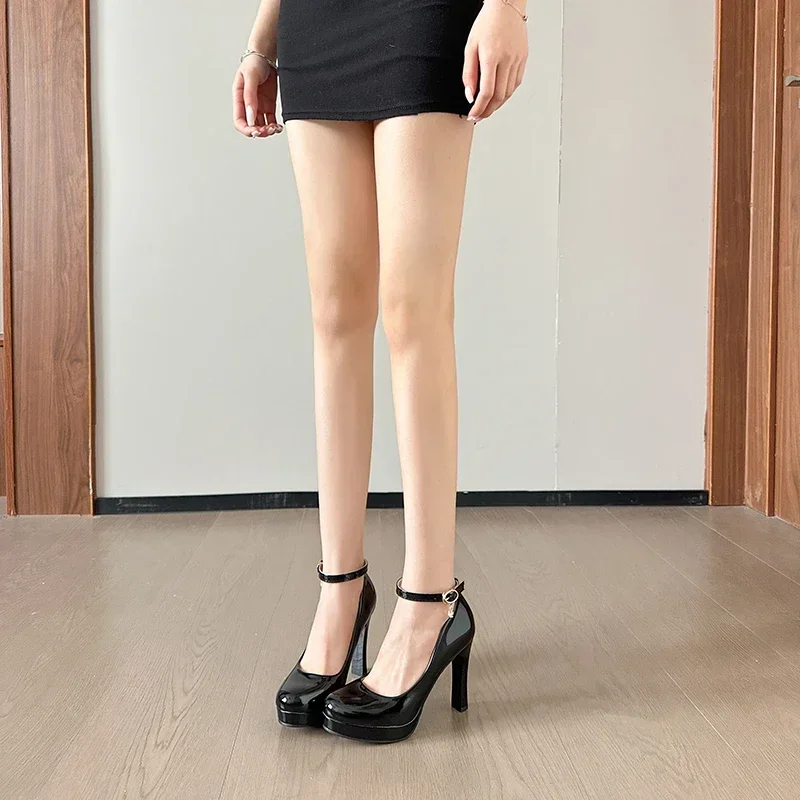 New York’s Fashion Thick-sole waterproof platform high heels model show sexy black patent leather dress fashionable ultra-high heels summer large