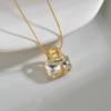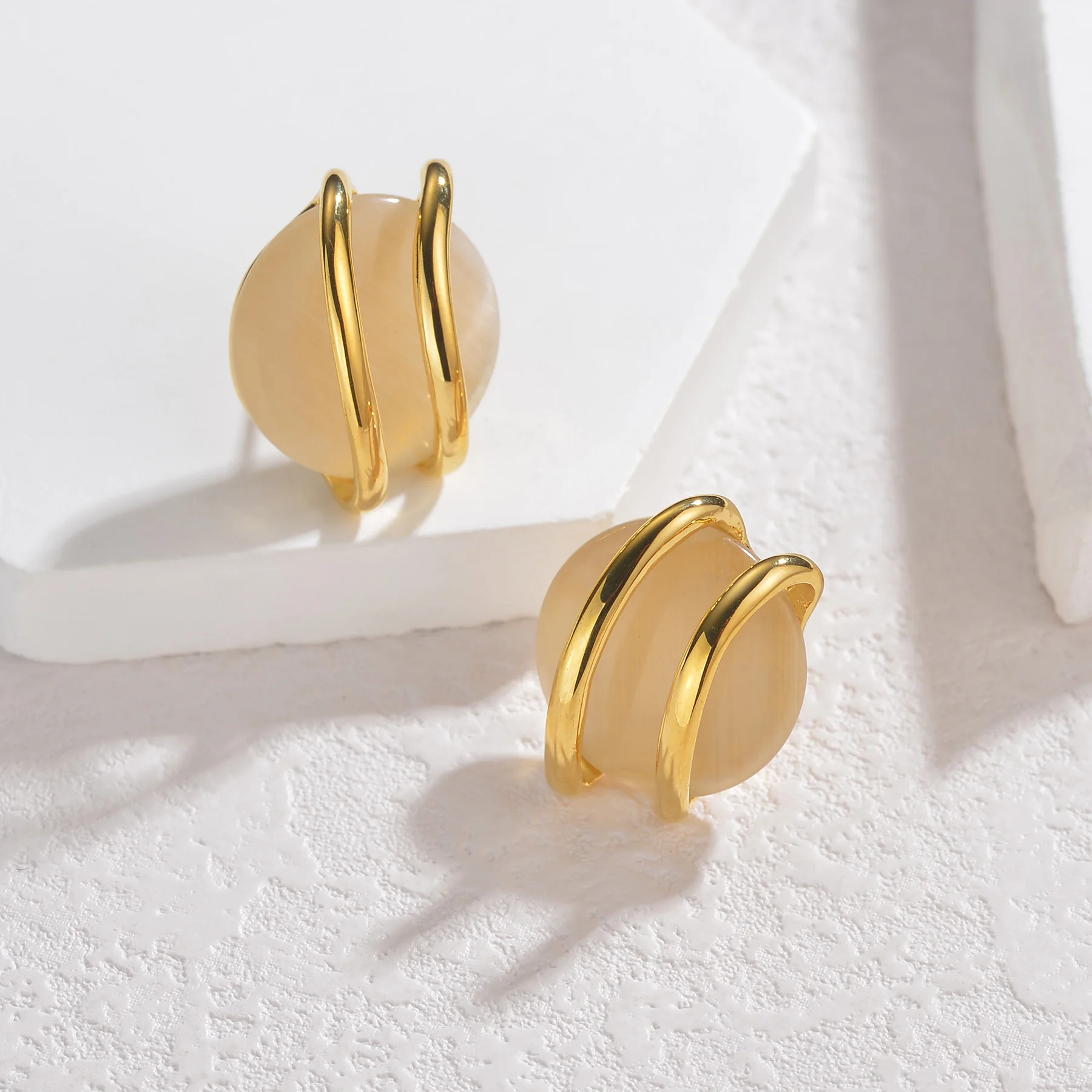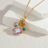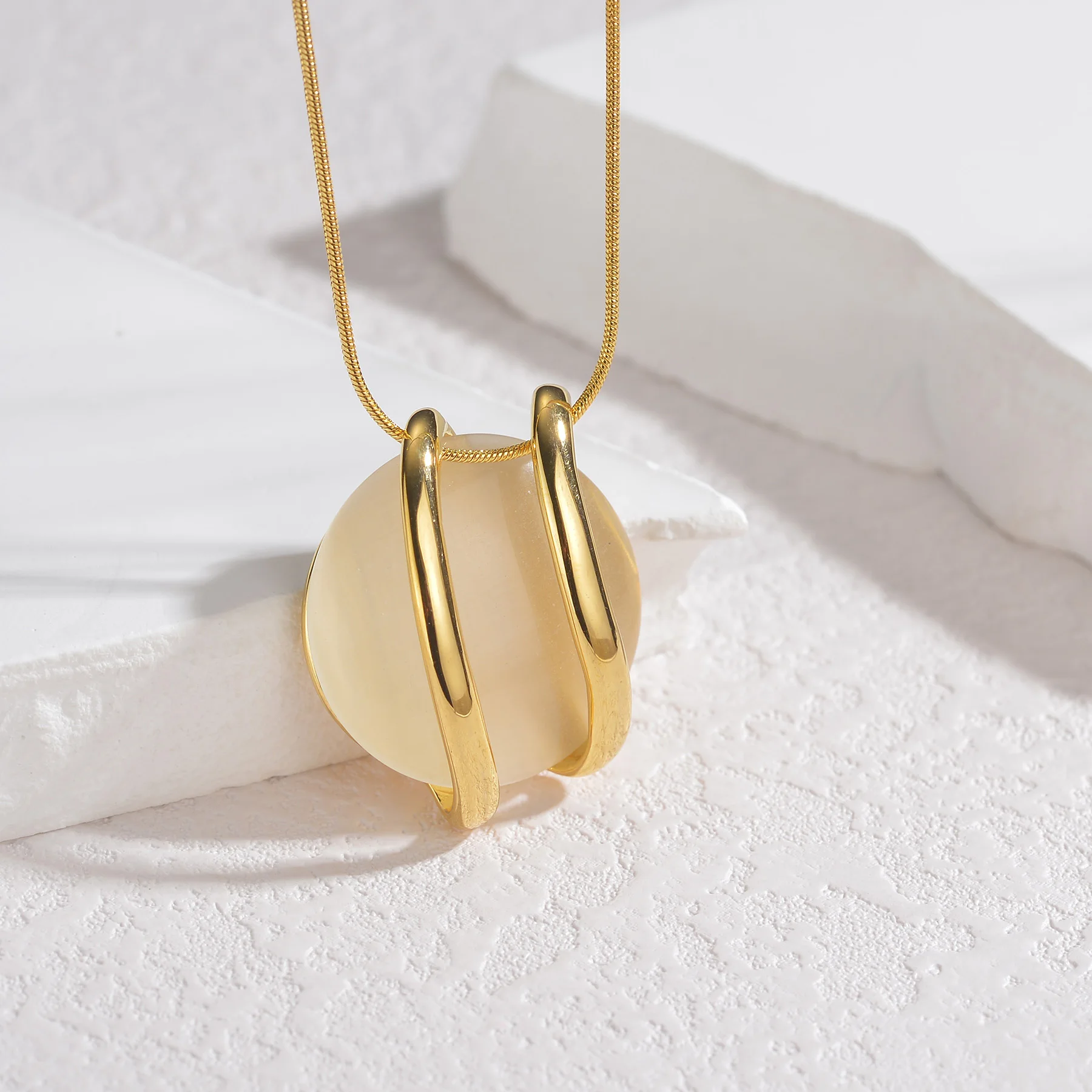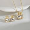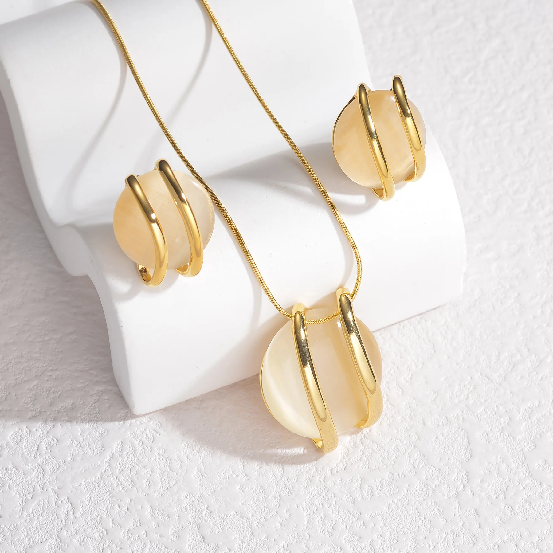 New York’s Fashion Trendy Fashion Stainless Steel Round Natural Stone Stud Earrings Necklace For Women Choker Jewelry Set Valentine’s Day Gifts