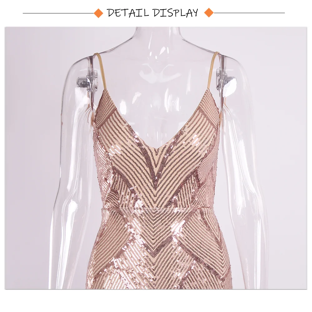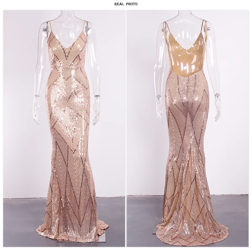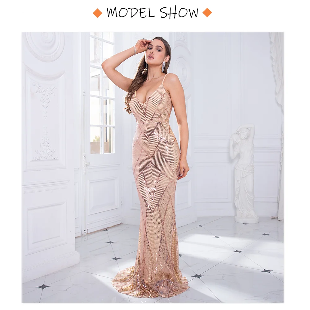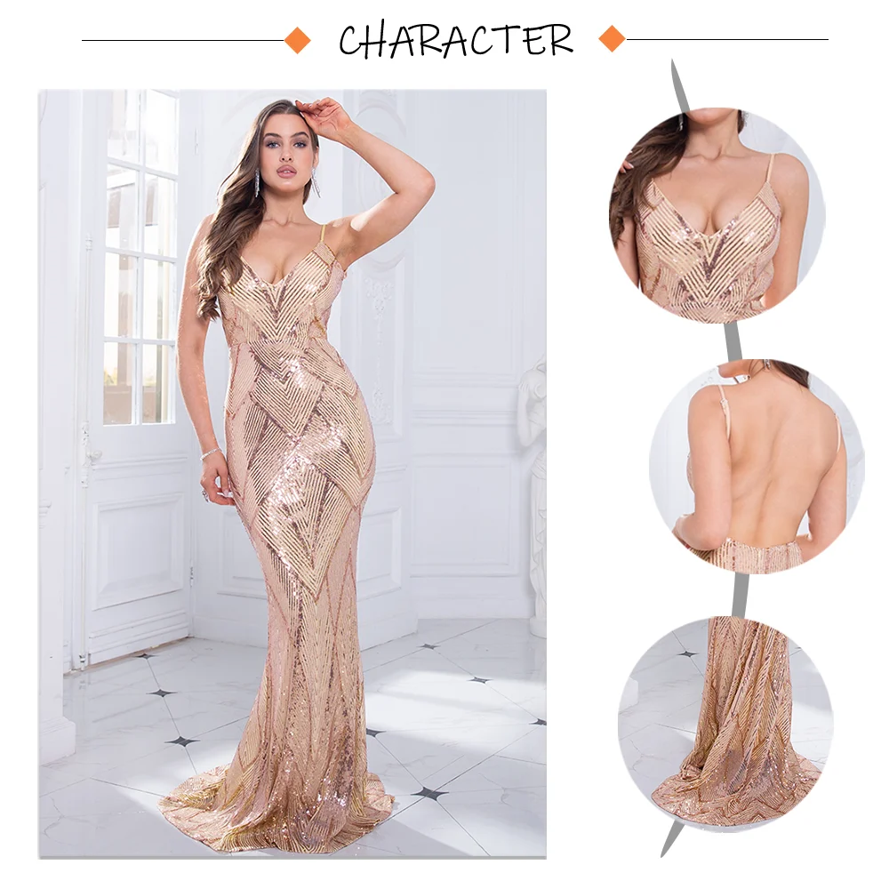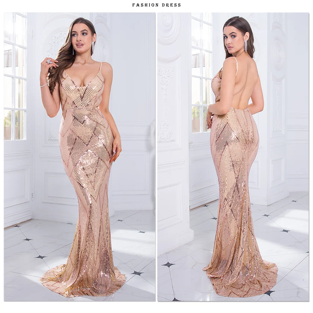 New York’s Fashion V Neck Evening Party Dresses Sequin Stretch Spaghetti Strap Occasion Cocktail Prom Dress Backless Gown Summer 2025