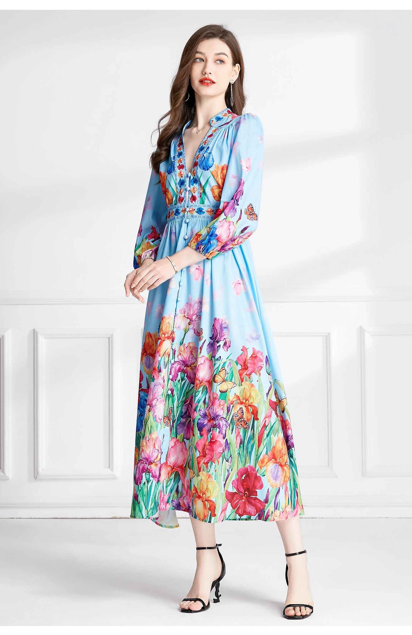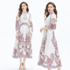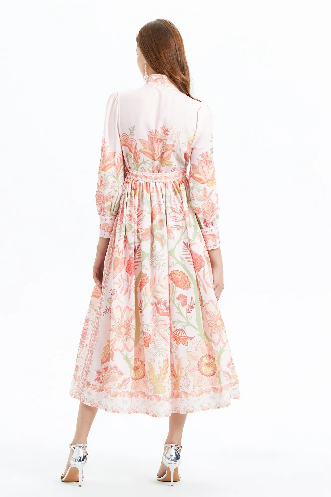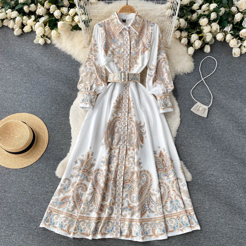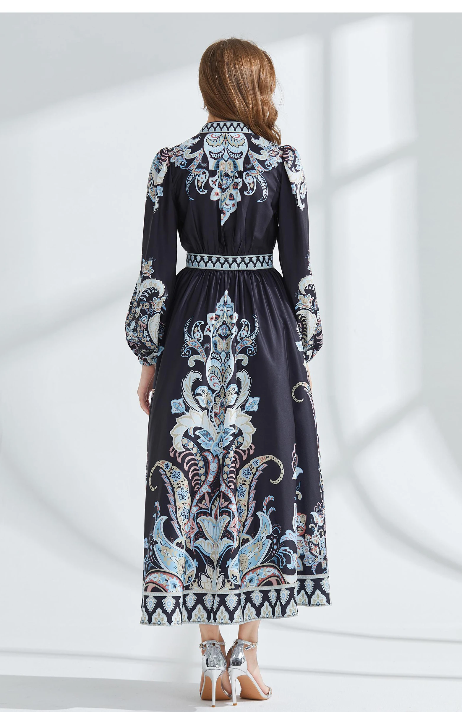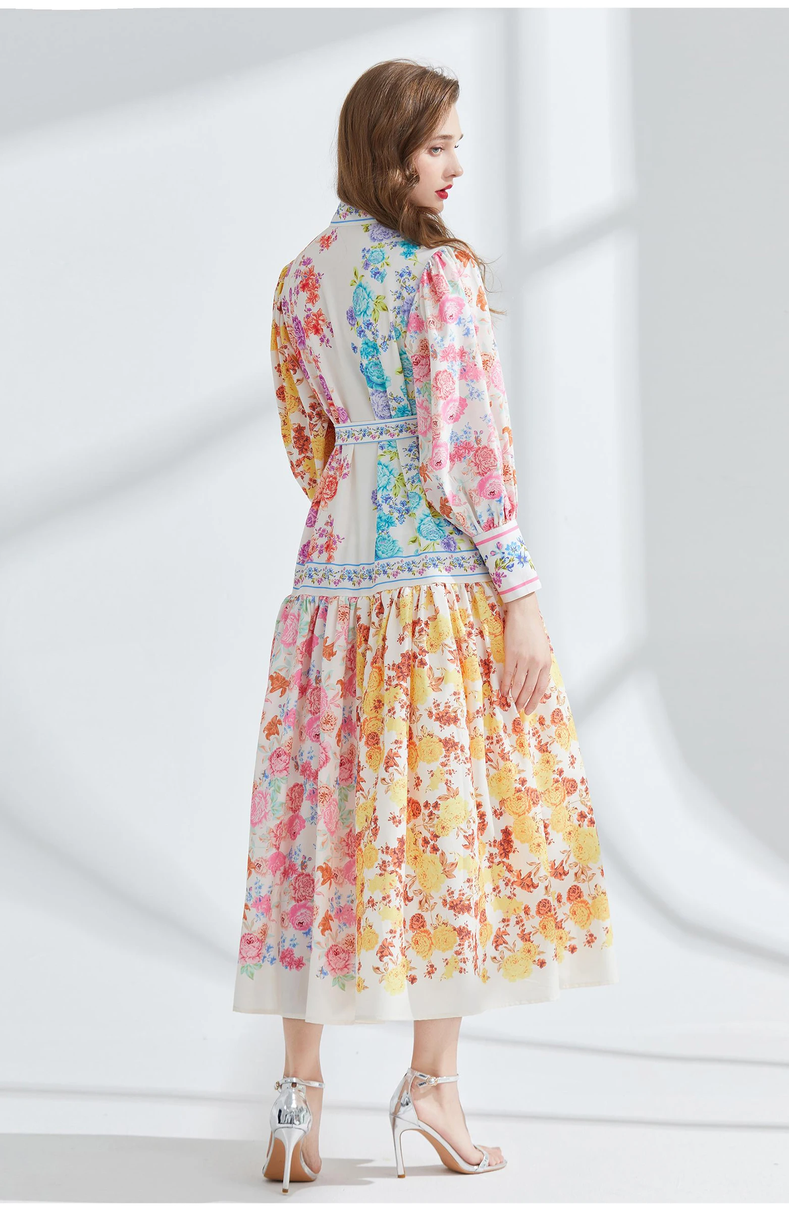 New York’s Fashion Vintage Dress Women Palace Retro Printing Dress Floral Long Sleeve Midi A Line Elegant Spring Vestidos