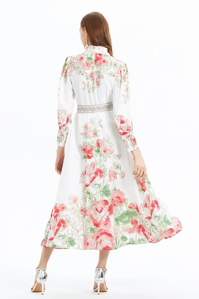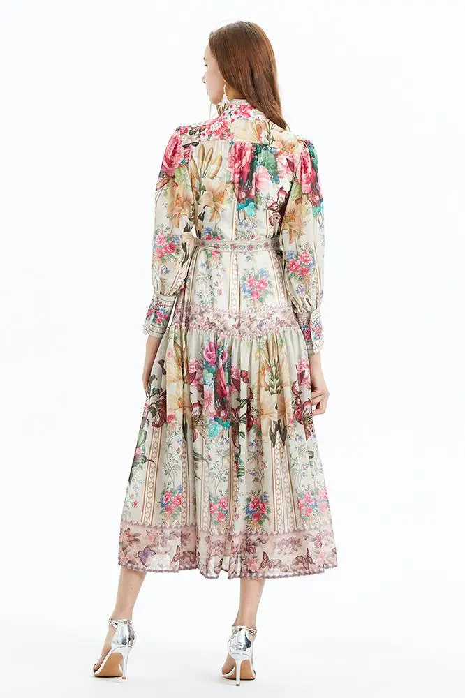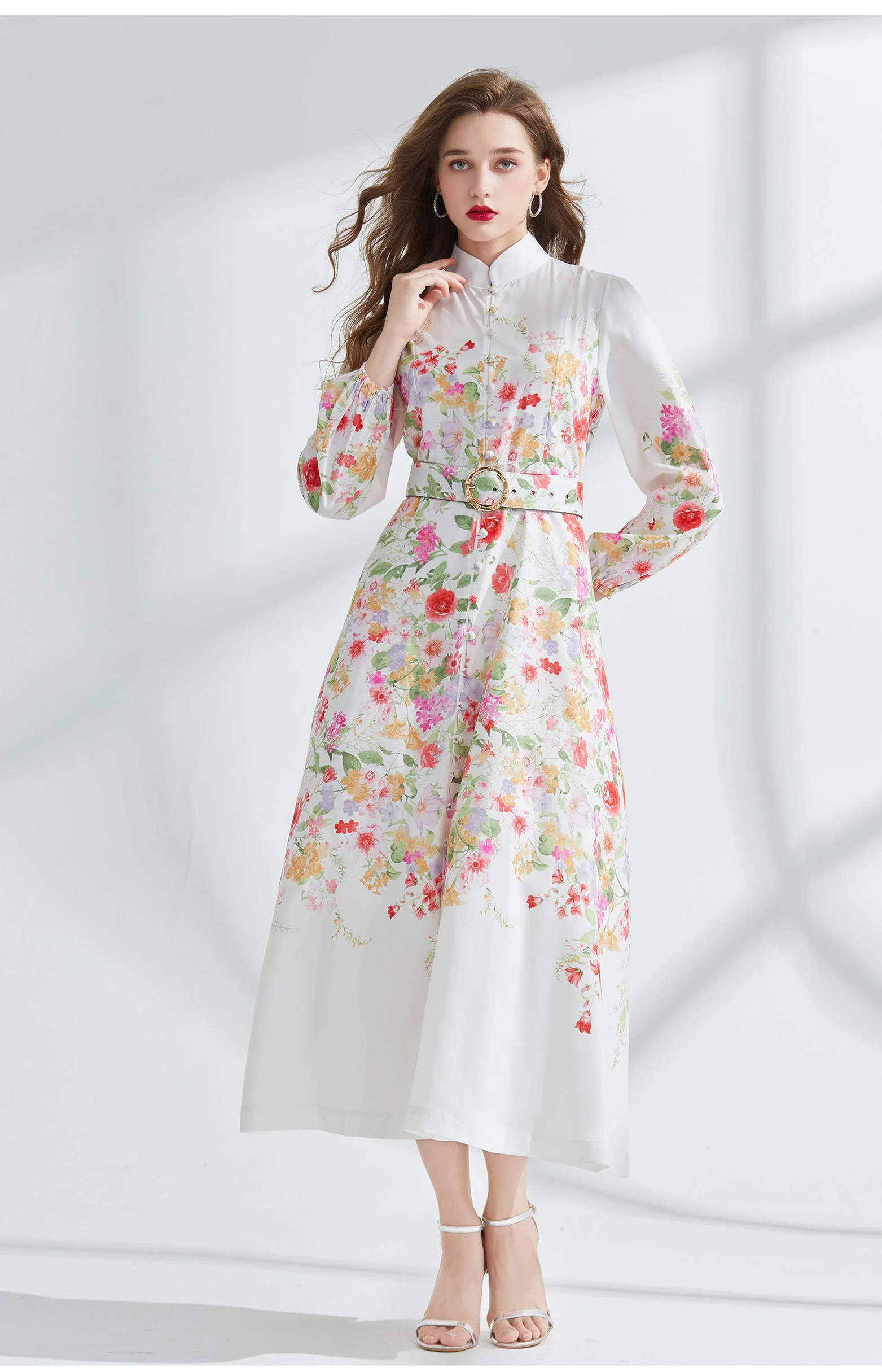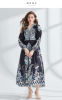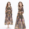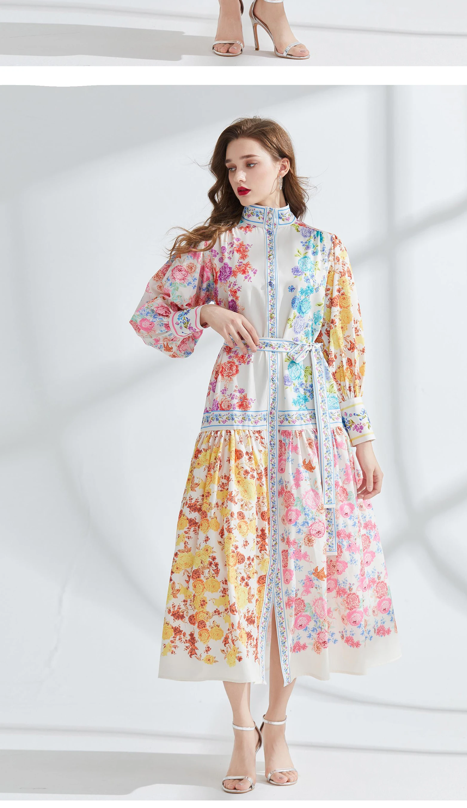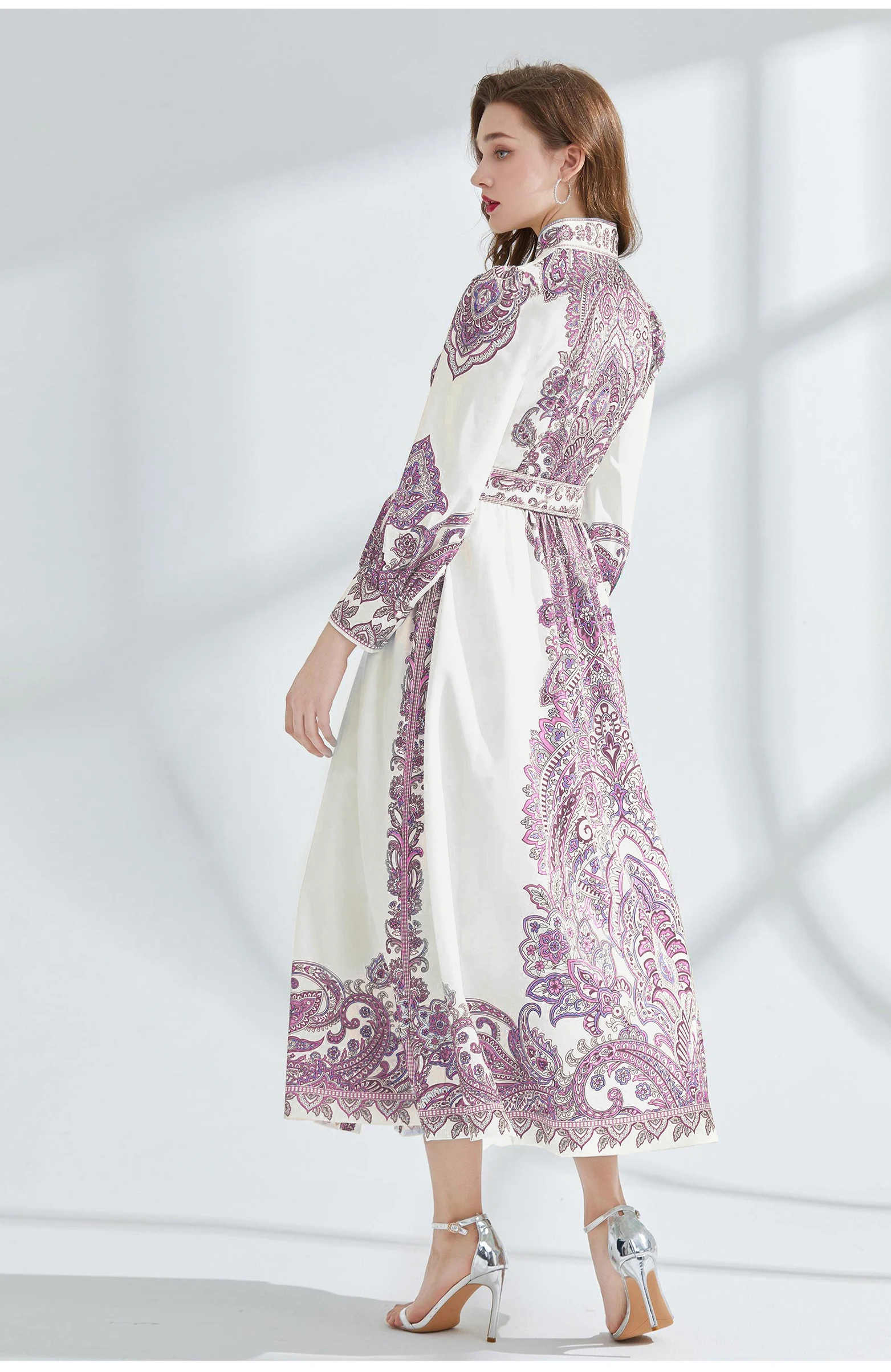 New York’s Fashion Vintage Dress Women Palace Retro Printing Dress Floral Long Sleeve Midi A Line Elegant Spring Vestidos