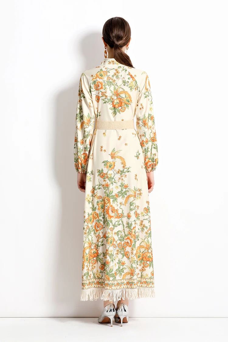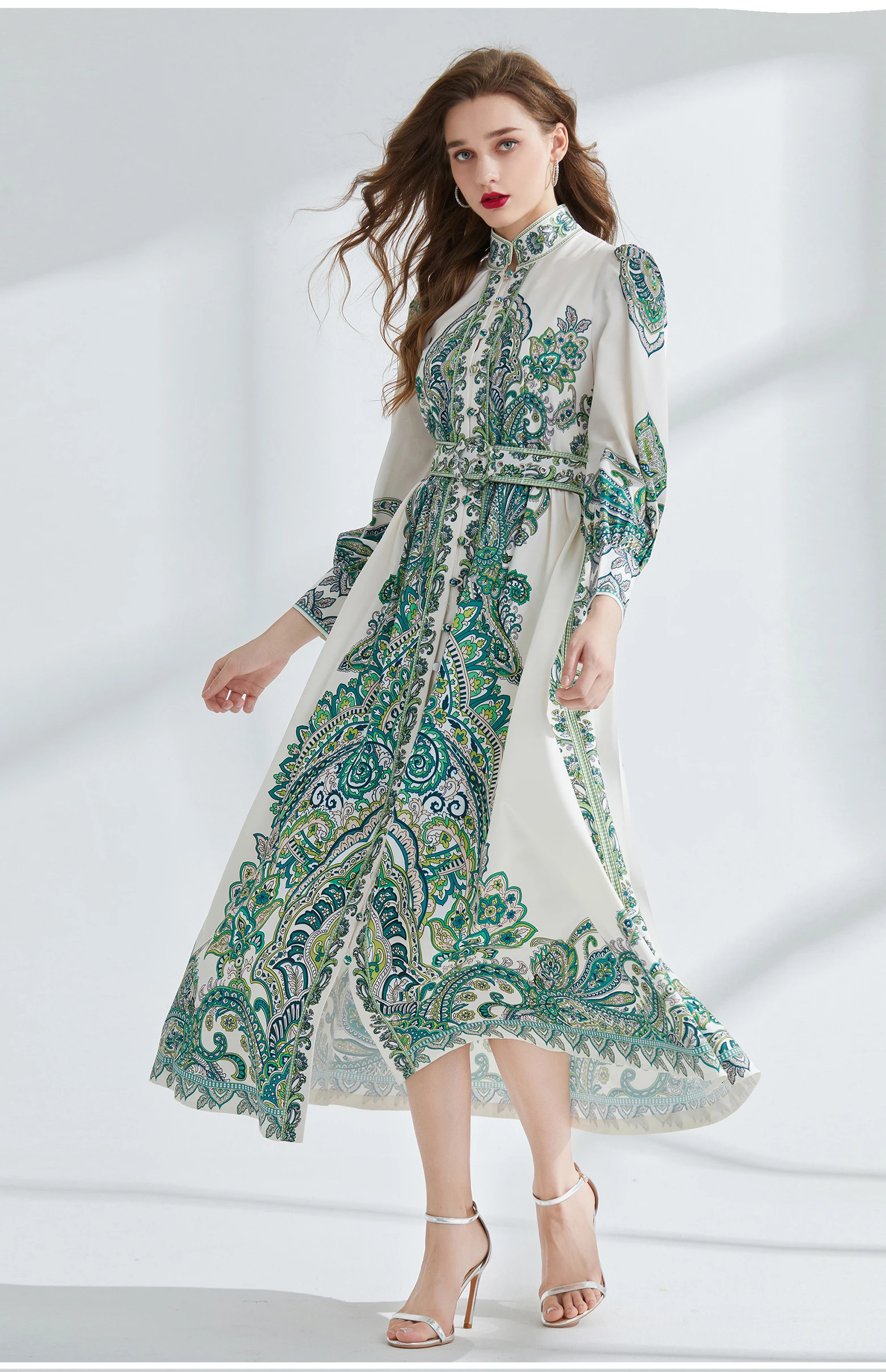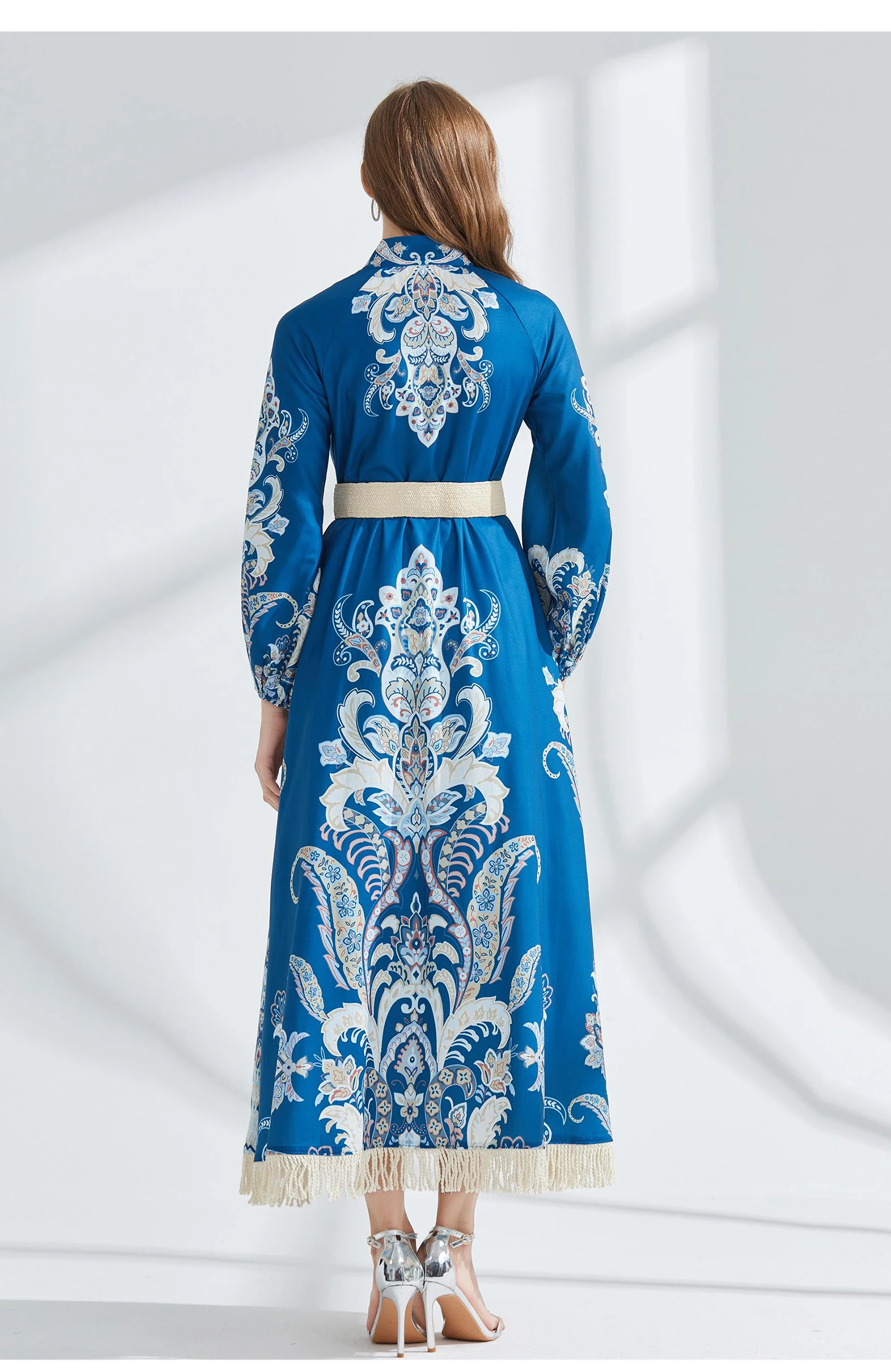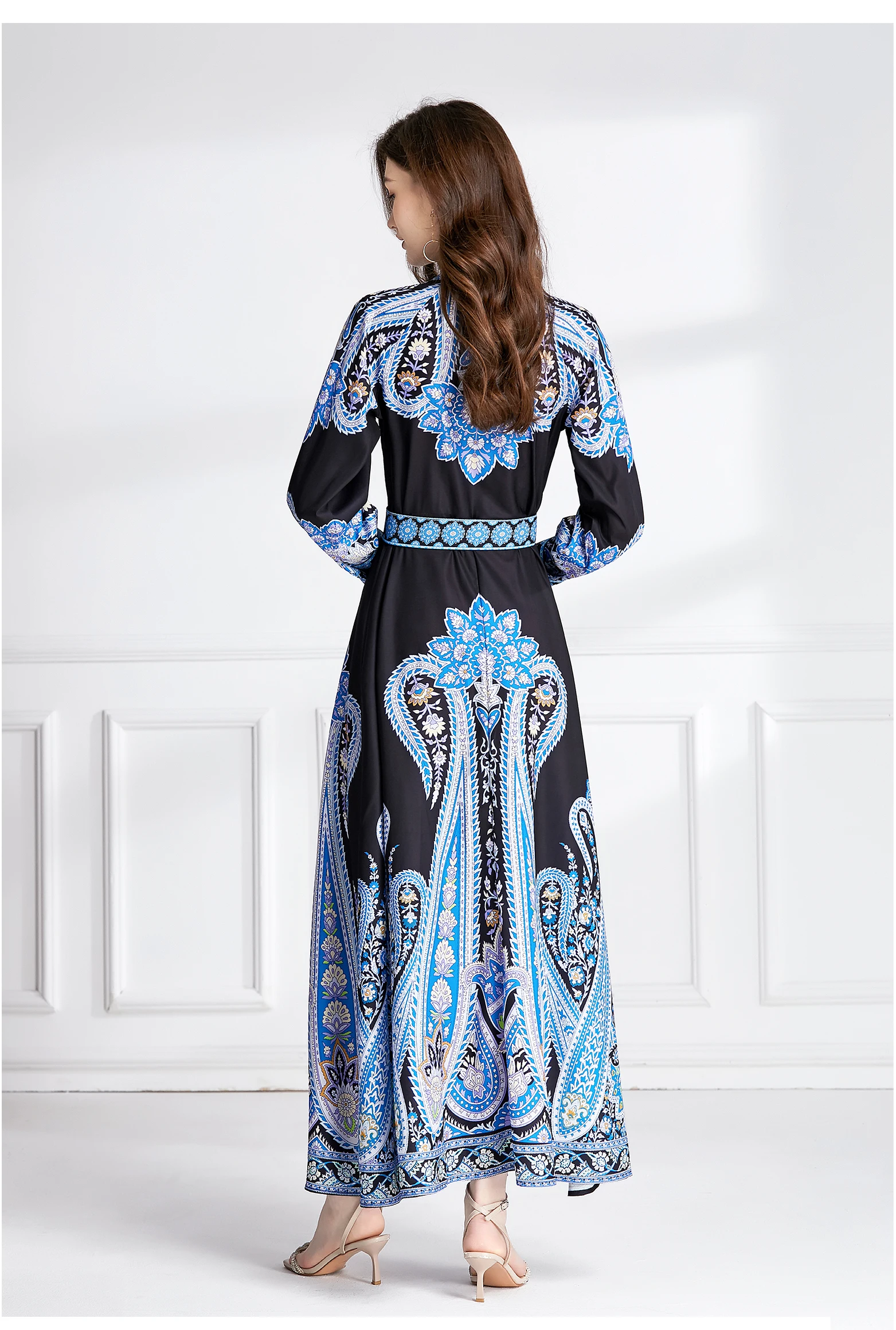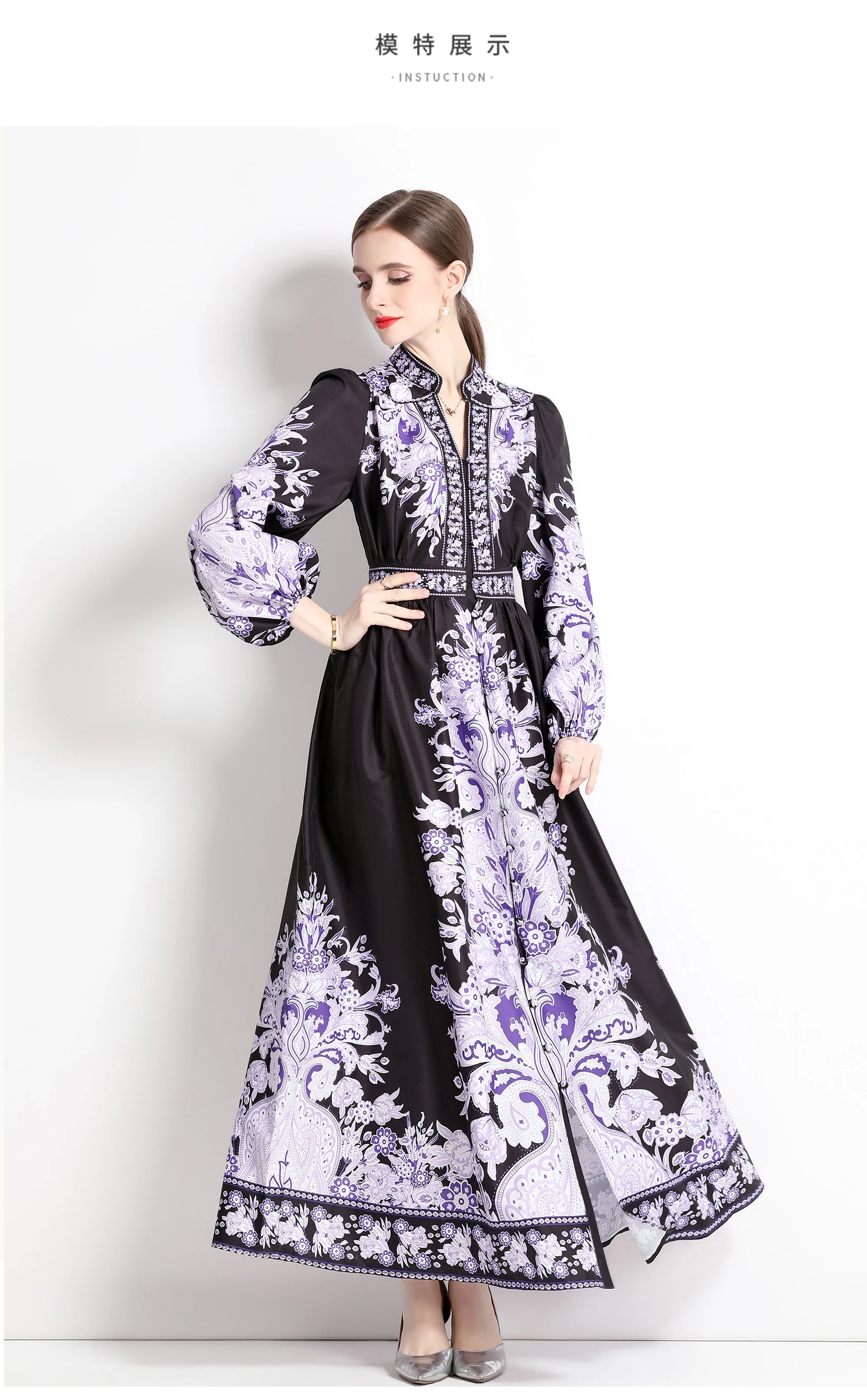 New York’s Fashion Vintage Dress Women Palace Retro Printing Dress Floral Long Sleeve Midi A Line Elegant Spring Vestidos