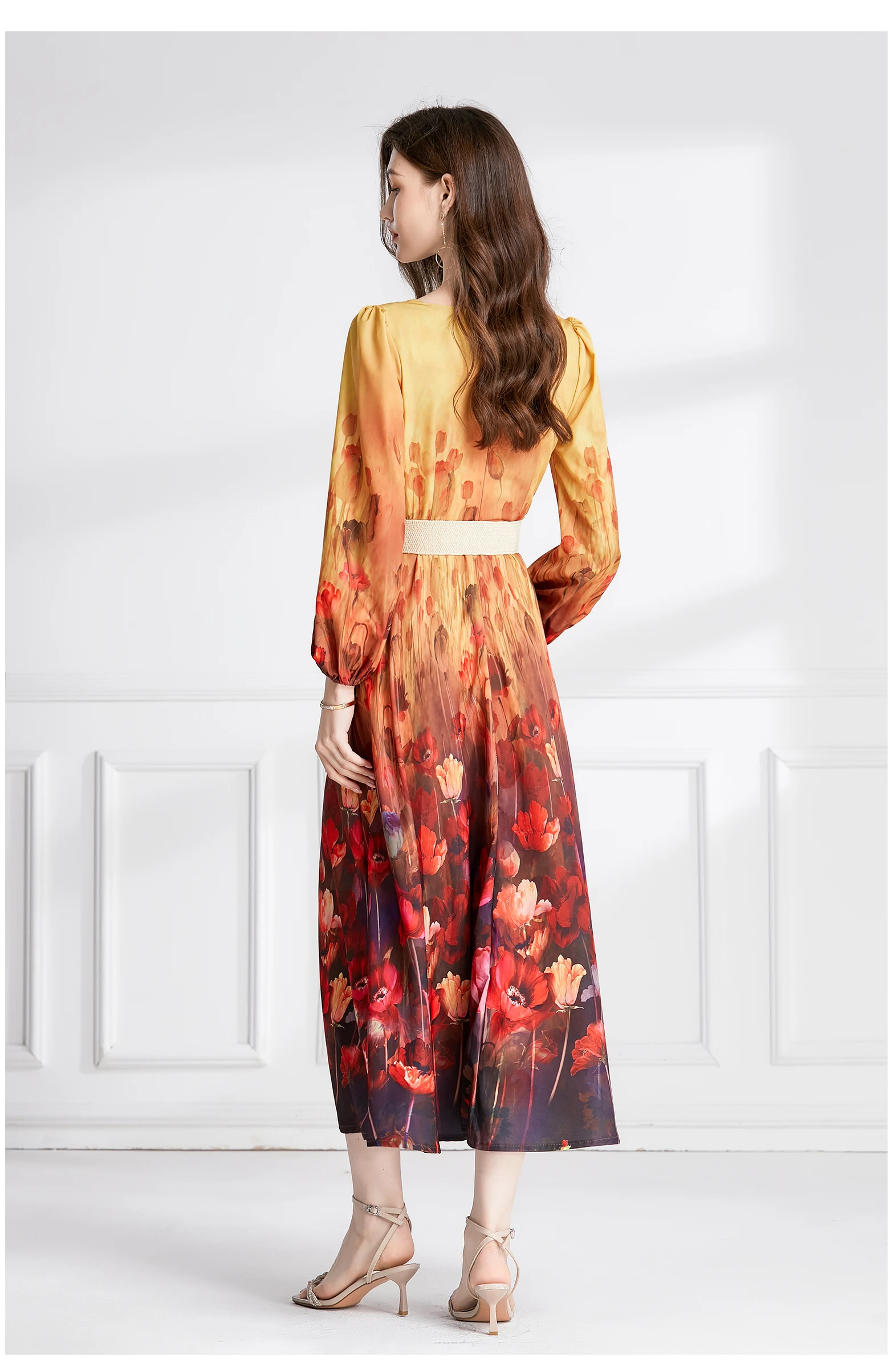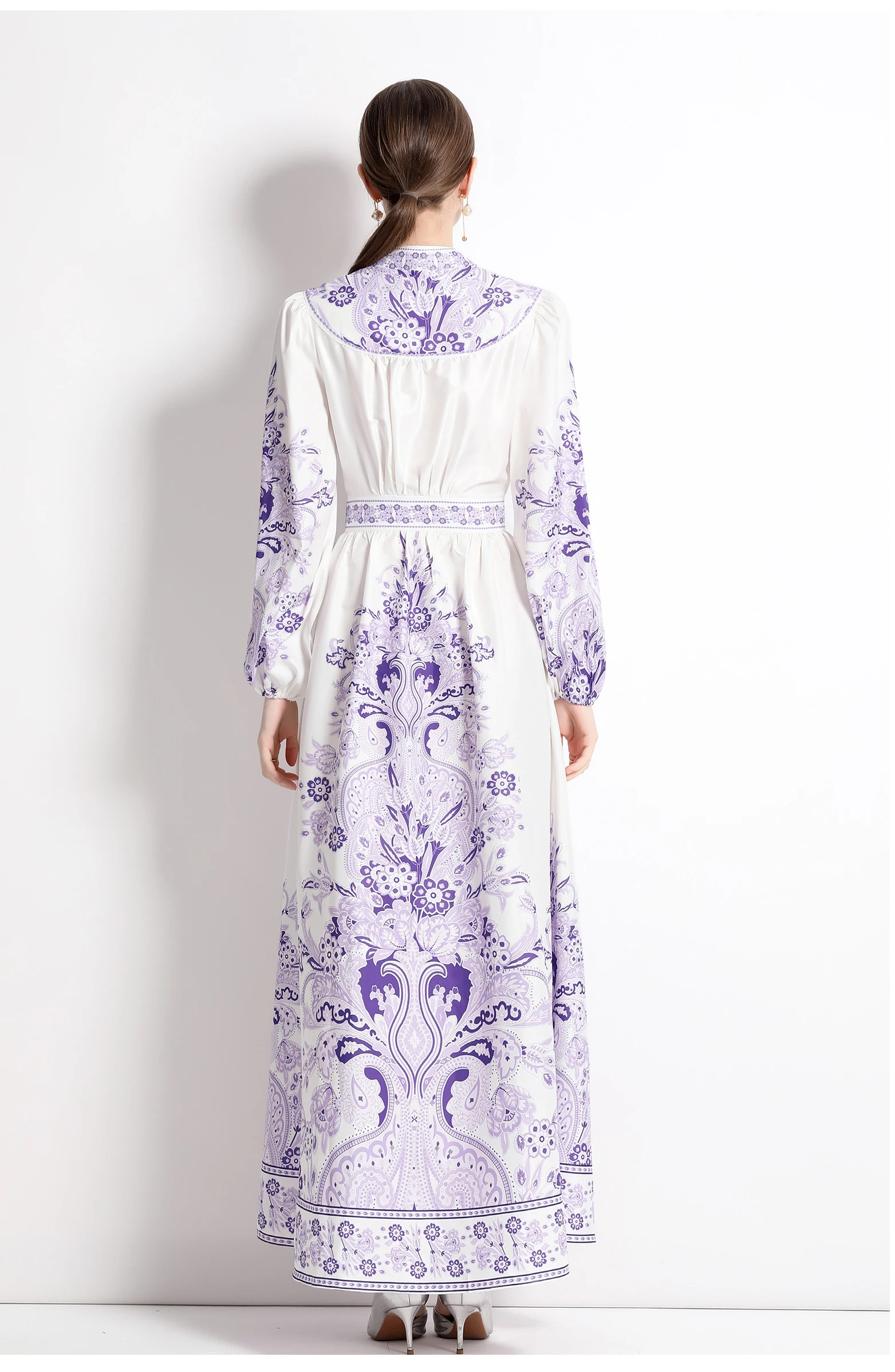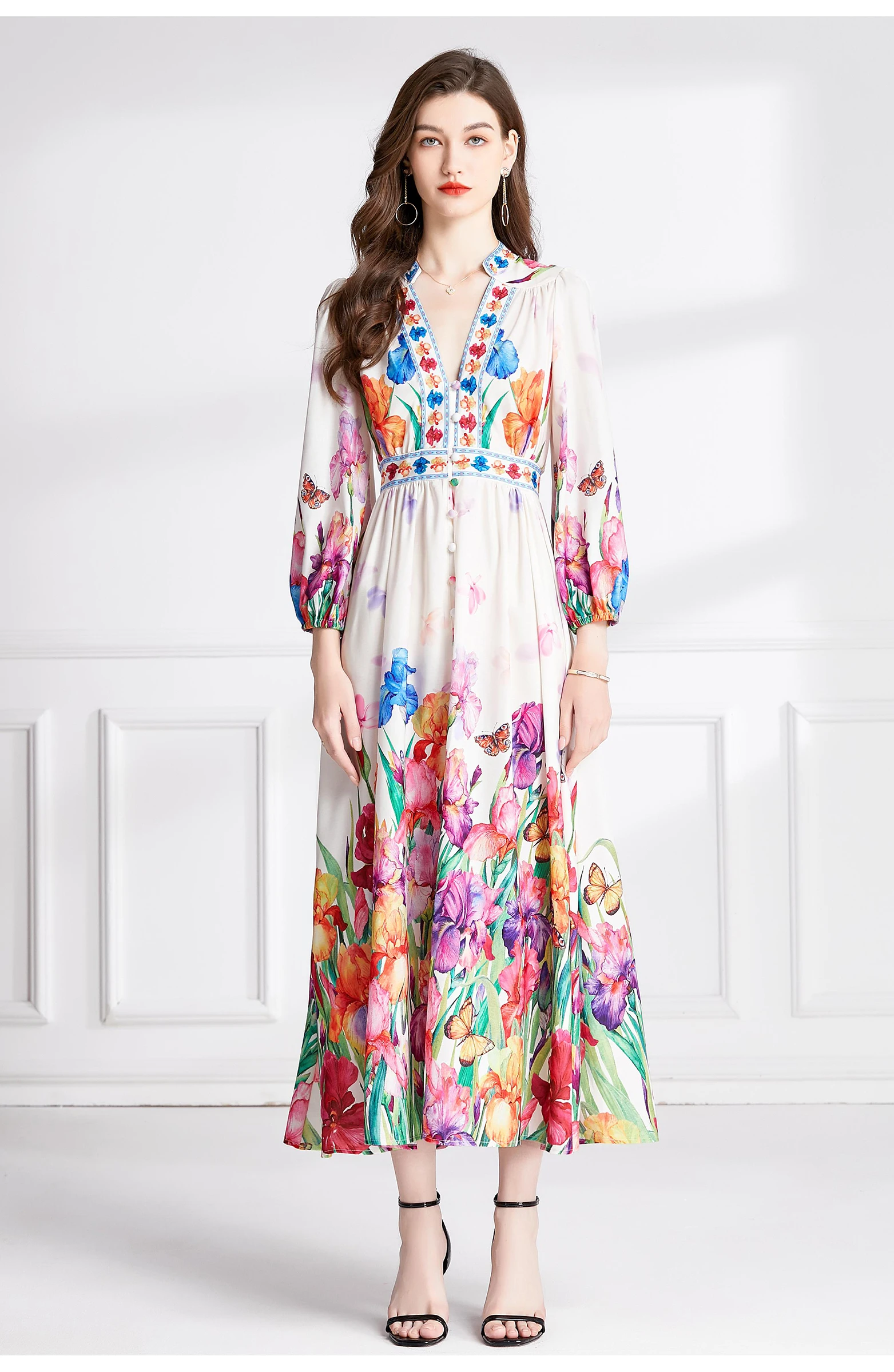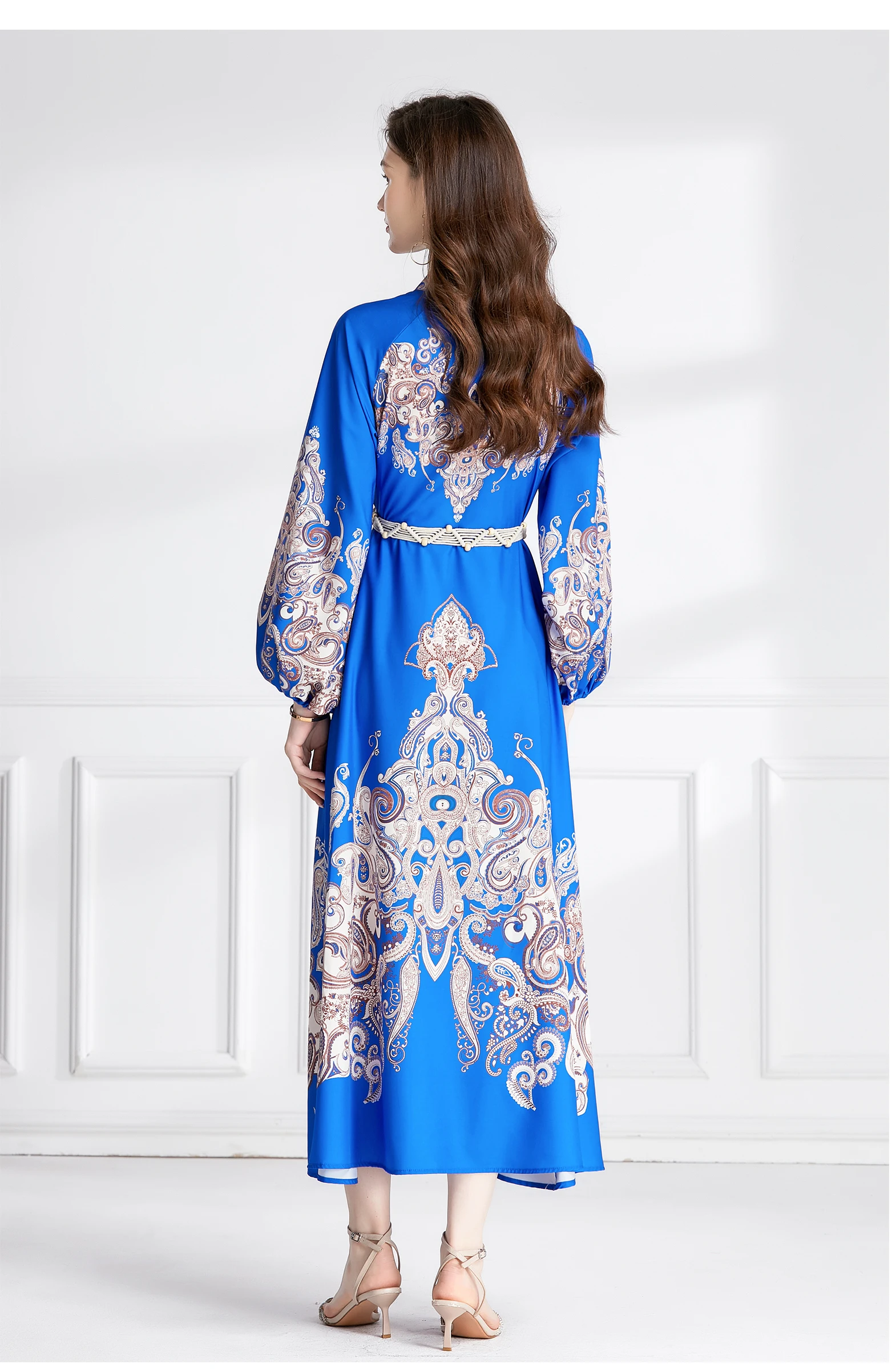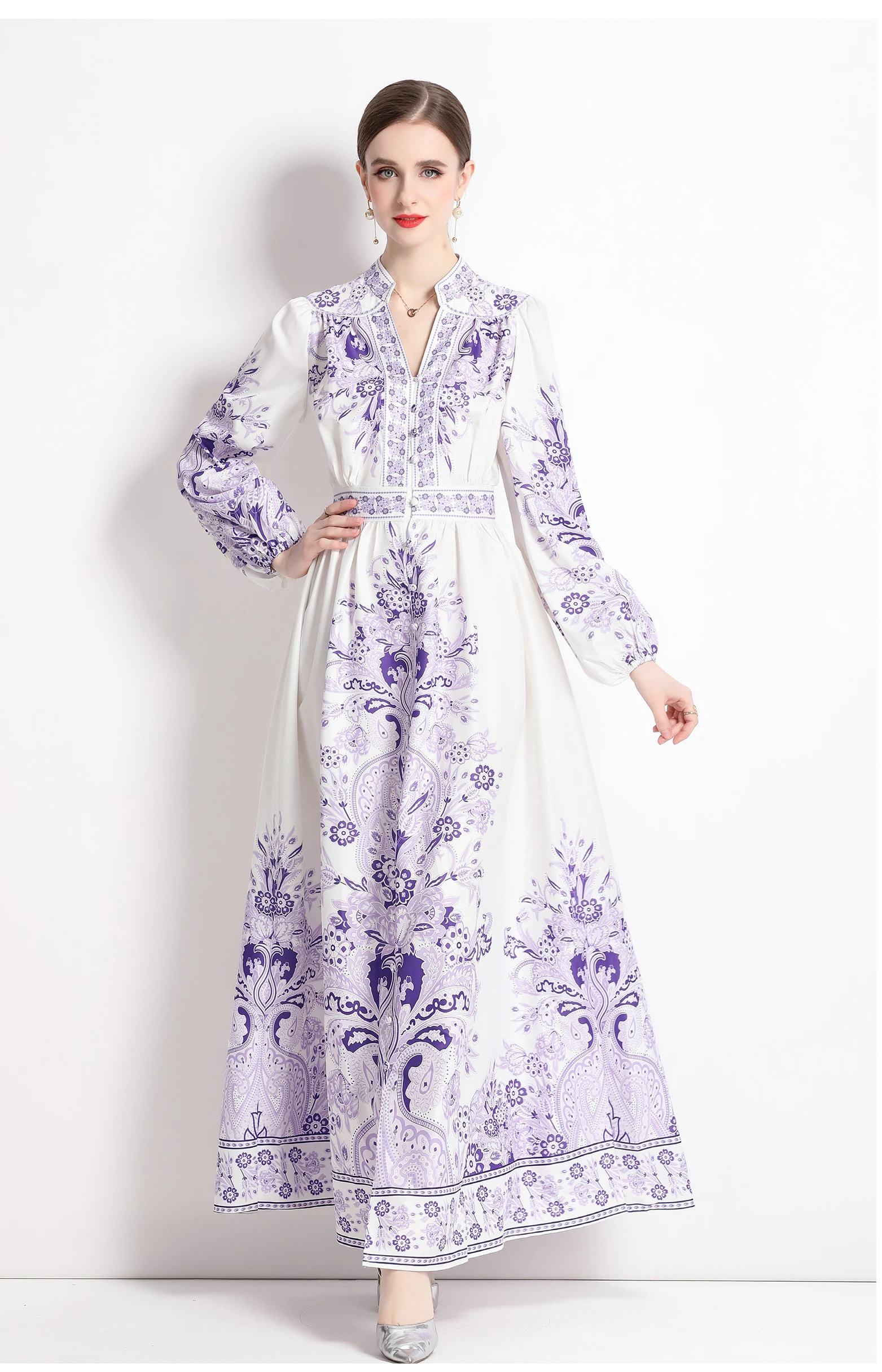New York’s Fashion Vintage Dress Women Palace Retro Printing Dress Floral Long Sleeve Midi A Line Elegant Spring Vestidos