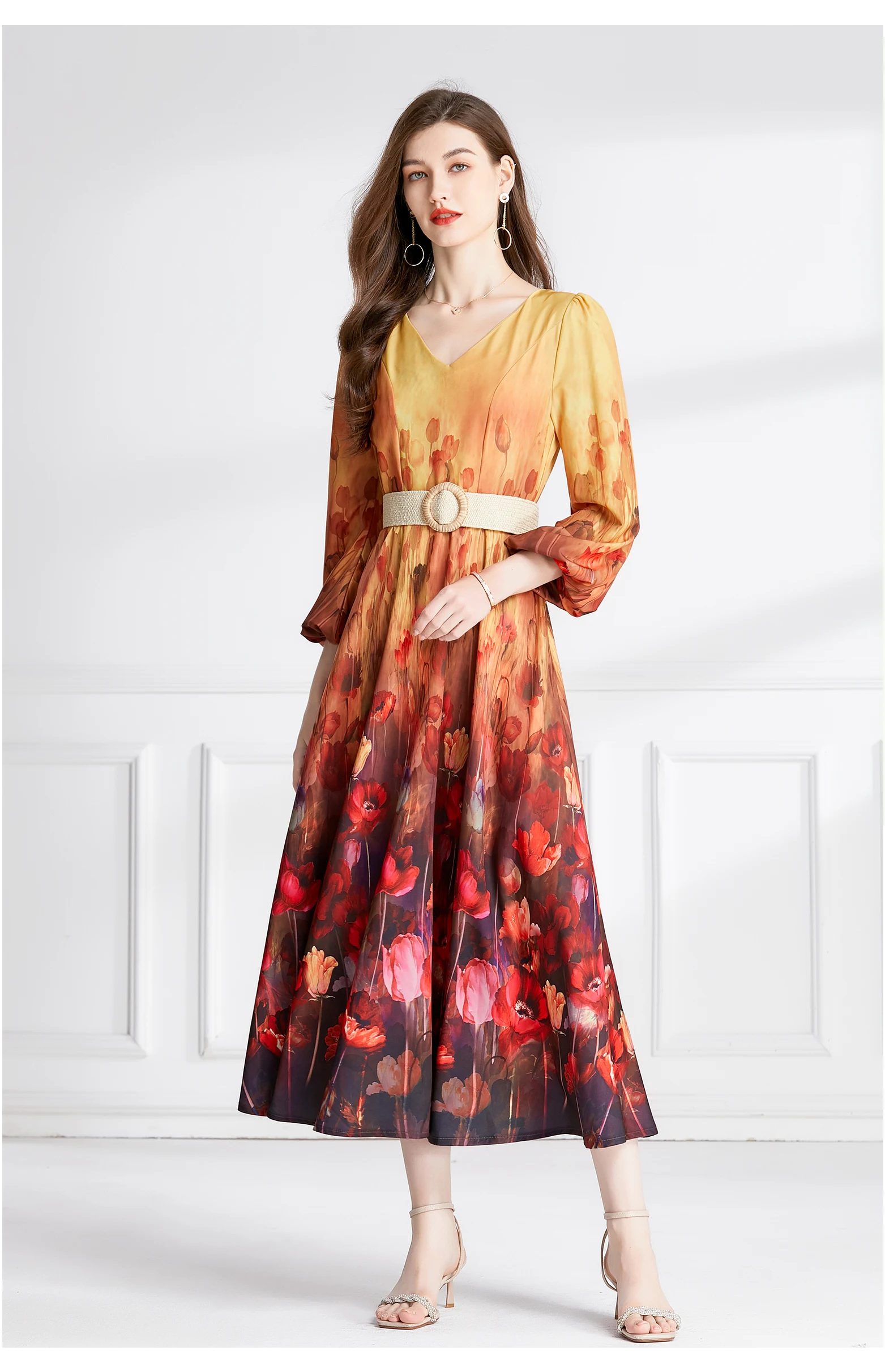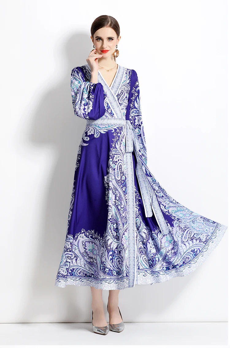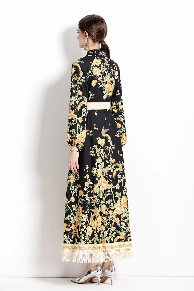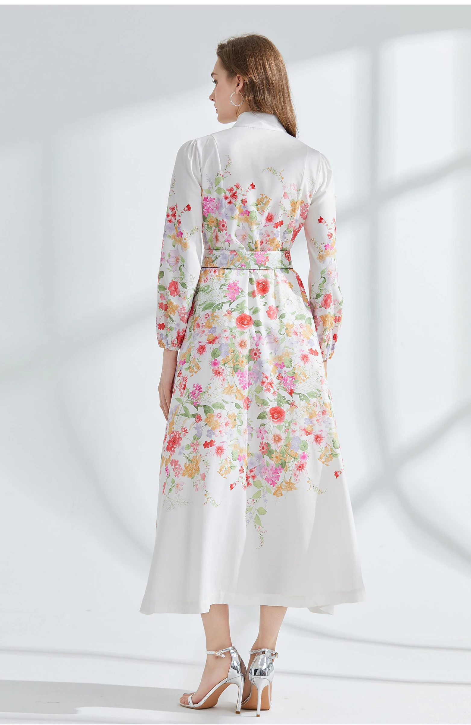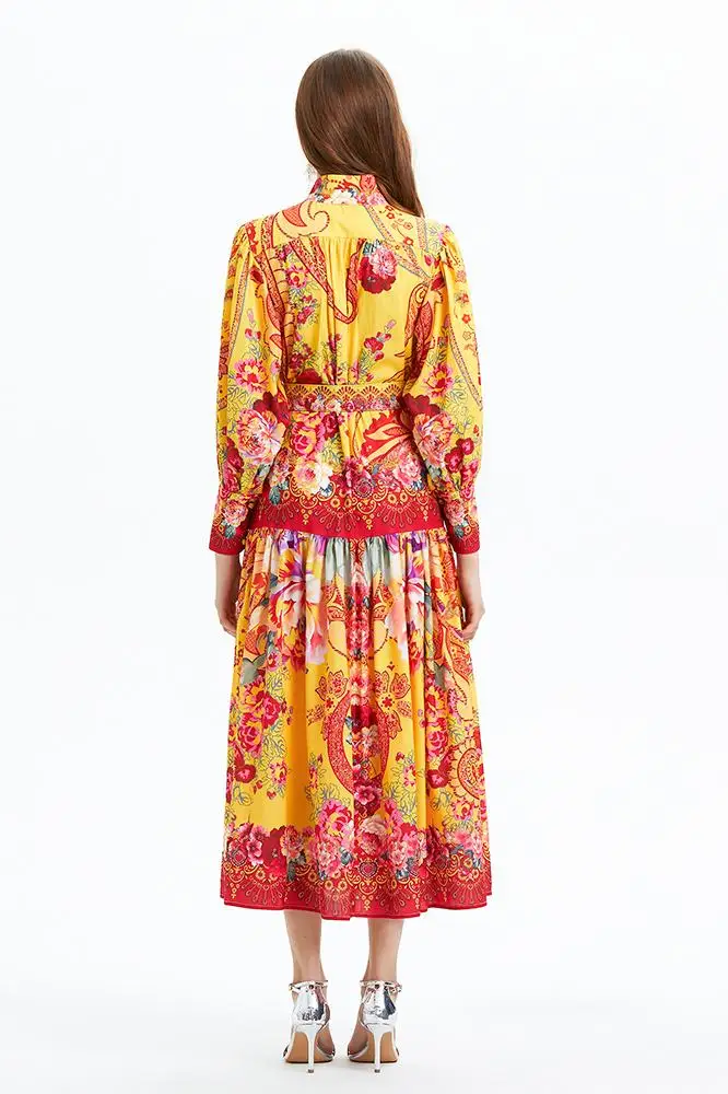 New York’s Fashion Vintage Dress Women Palace Retro Printing Dress Floral Long Sleeve Midi A Line Elegant Spring Vestidos