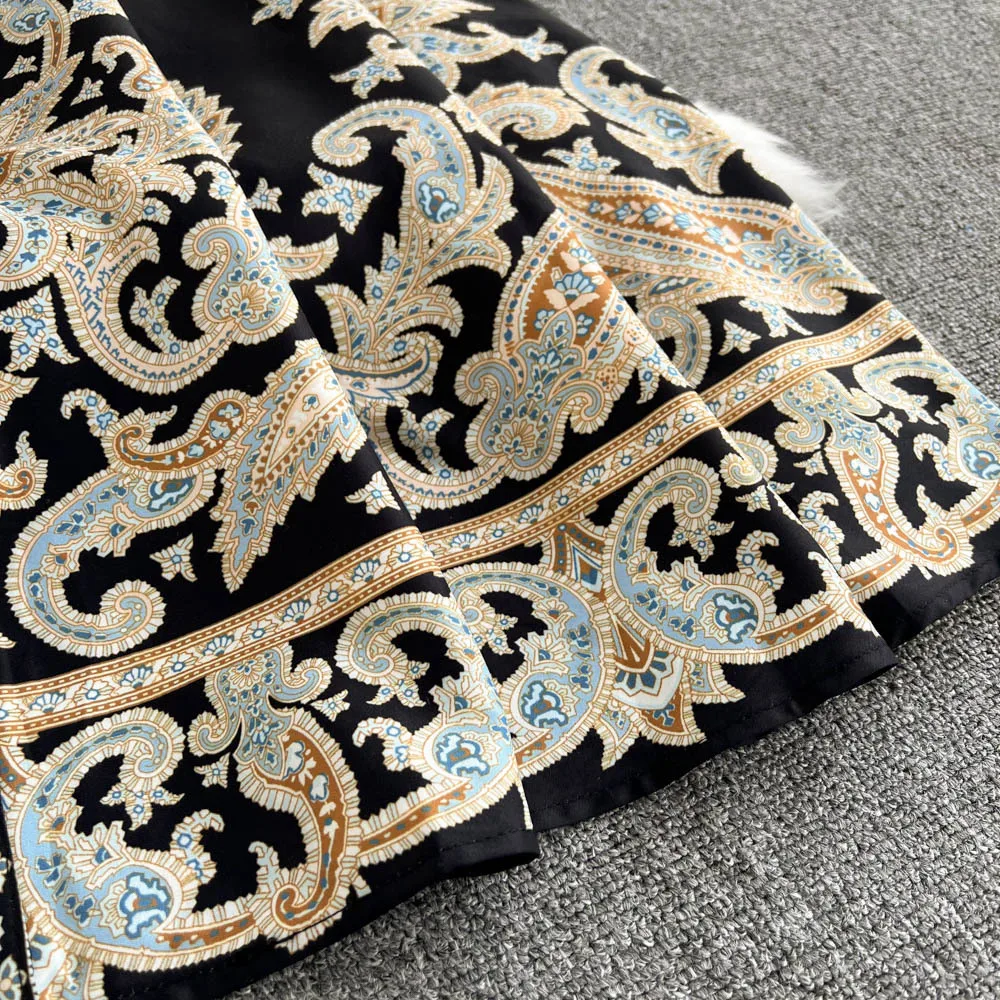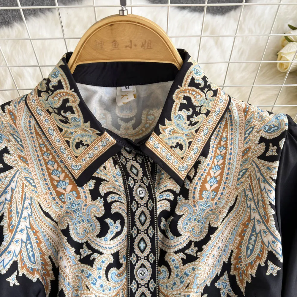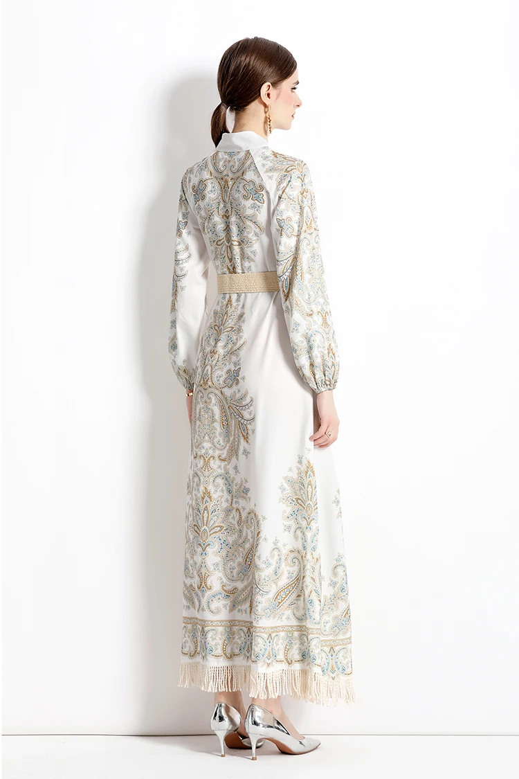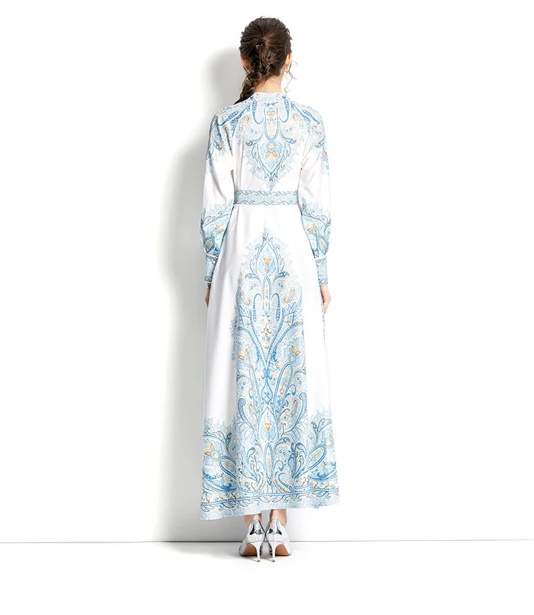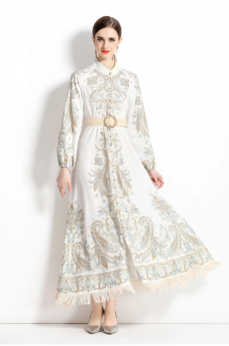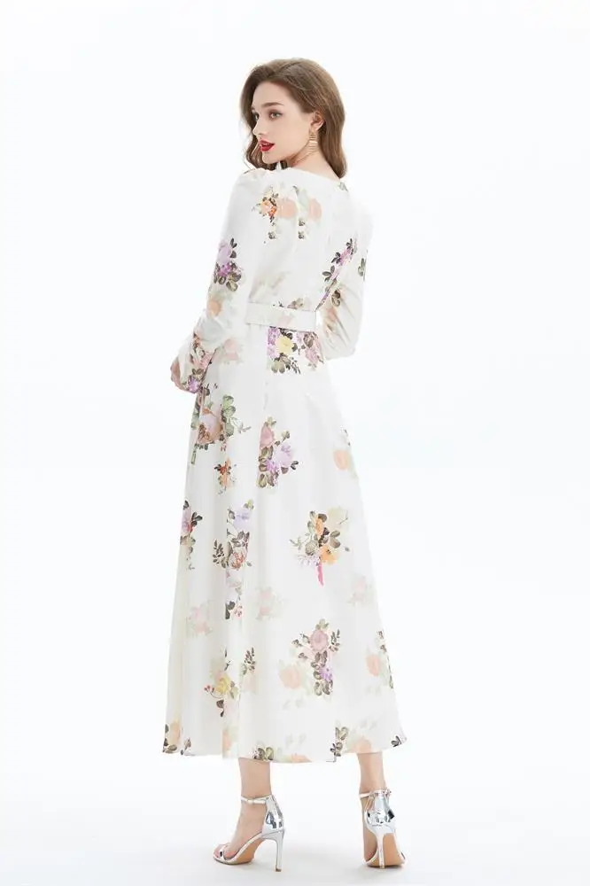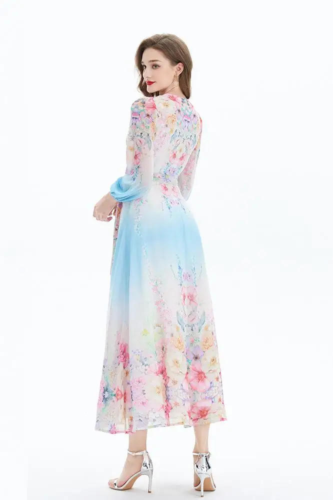 New York’s Fashion Vintage Dress Women Palace Retro Printing Dress Floral Long Sleeve Midi A Line Elegant Spring Vestidos