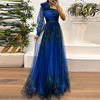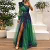 New York’s Fashion Vintage Pattern Printed High Waist Long Dress Sexy Asymmetric Mesh Evening Dress New One Shoulder Sleeve Pleats Bridesmaid Dress