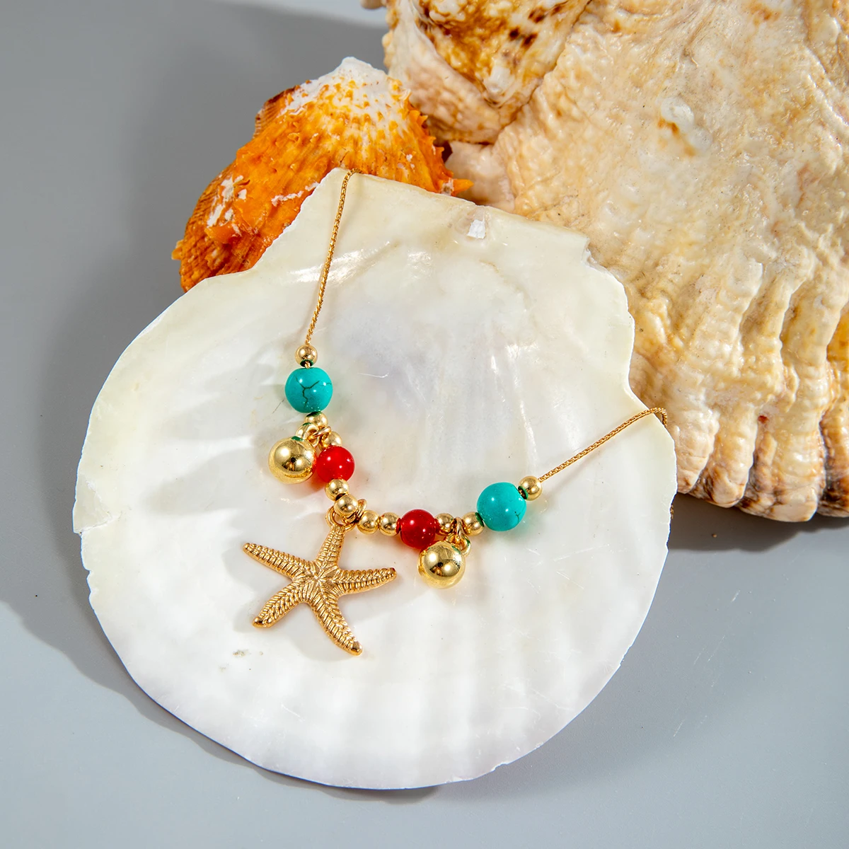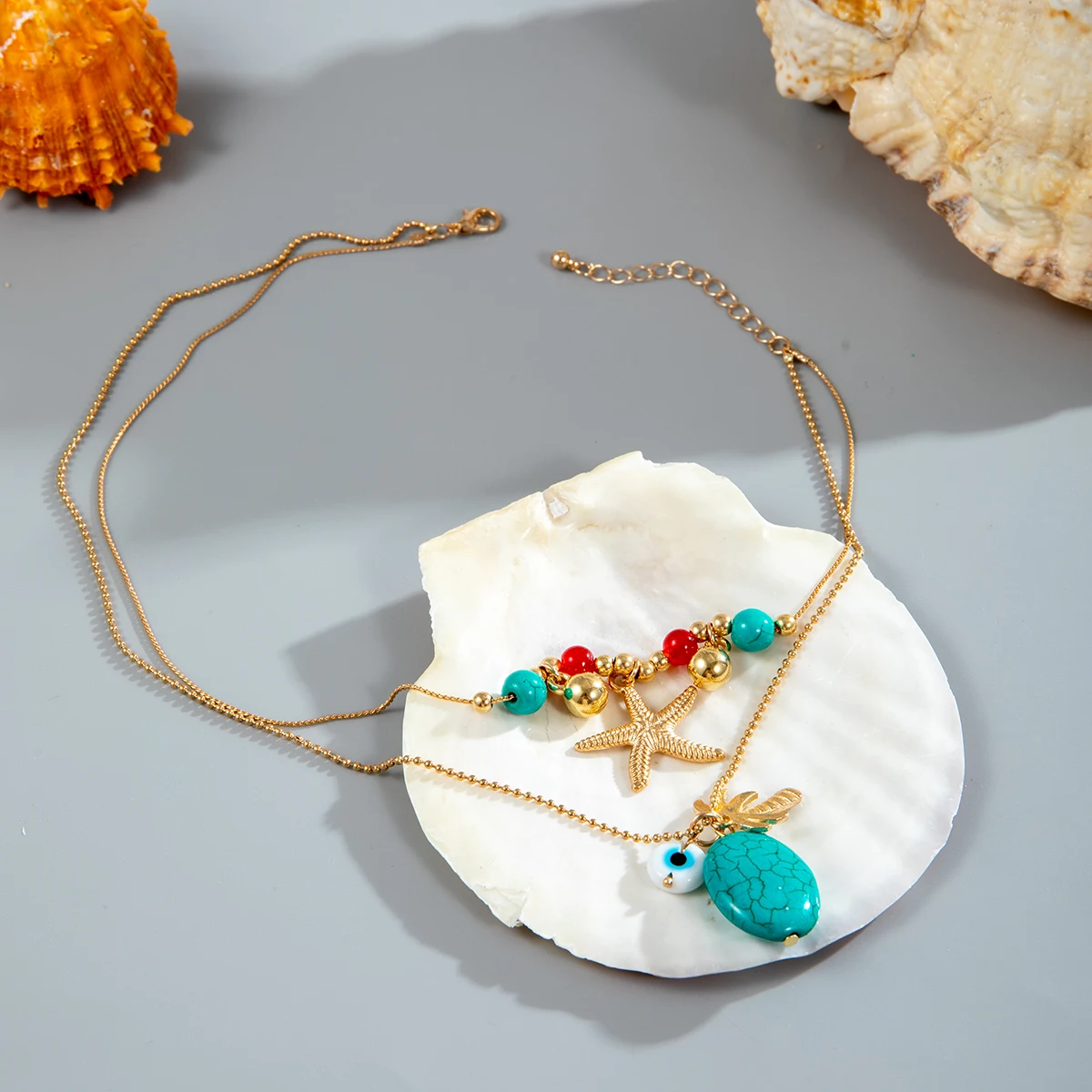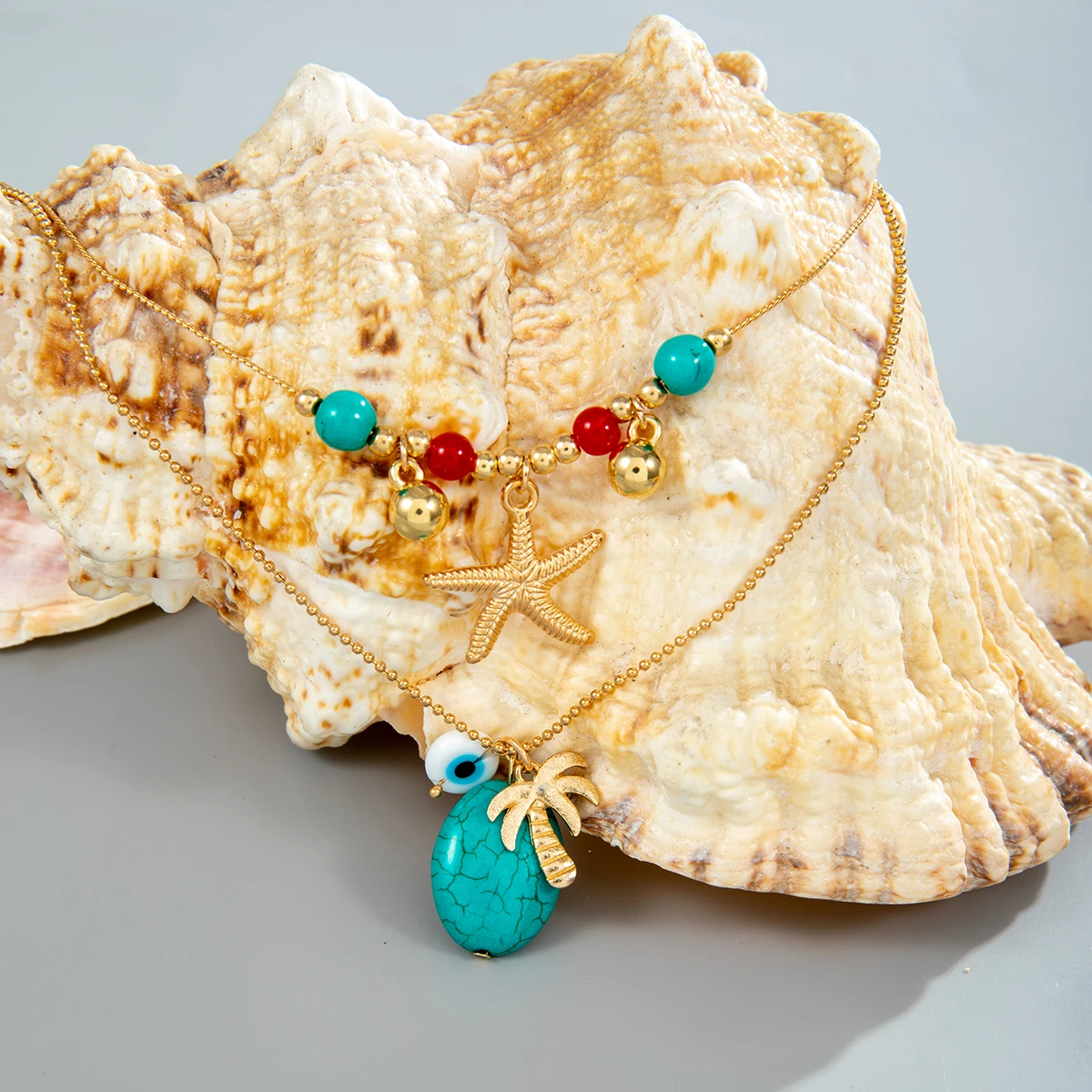 New York’s Fashion Vintage Starfish Green Stone Pendant Necklace for Women Fashion Eye Coconut Tree Necklaces Jewelry Party Girls