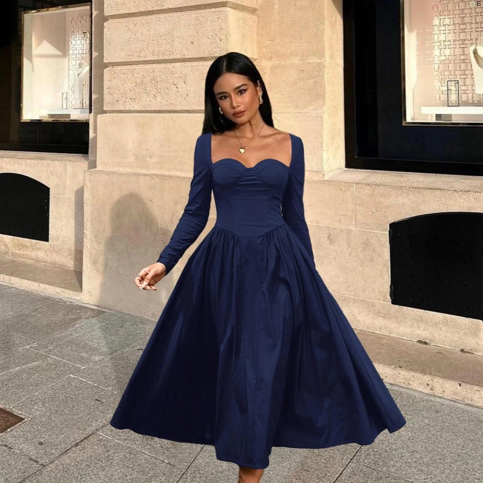 New York’s Fashion Winter Long Sleeve Midi Dress Women Elegant A Line Party Dresses Royal Casual Birthday Holiday Dress Women’s Clothing