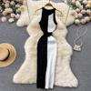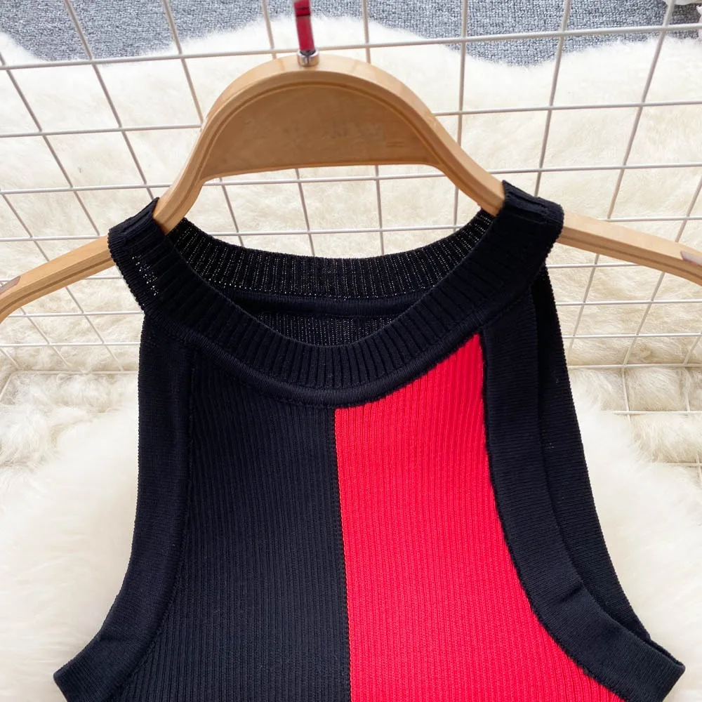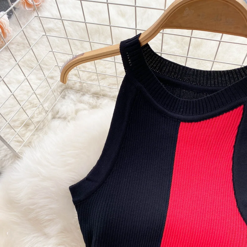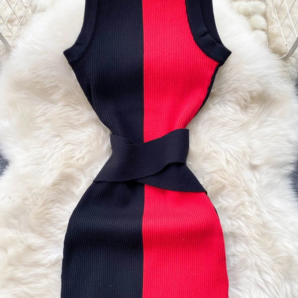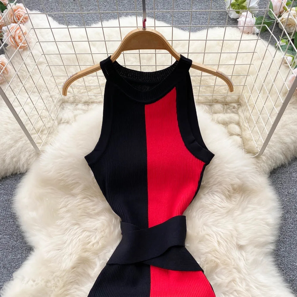 New York’s Fashion Women Dress 2025 Summer Elegant Rib Knit Slim Waist Bandage Pencil Dress Office Lady Sleeveless Bodycon Sweater Dress