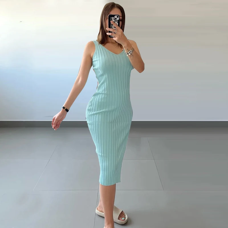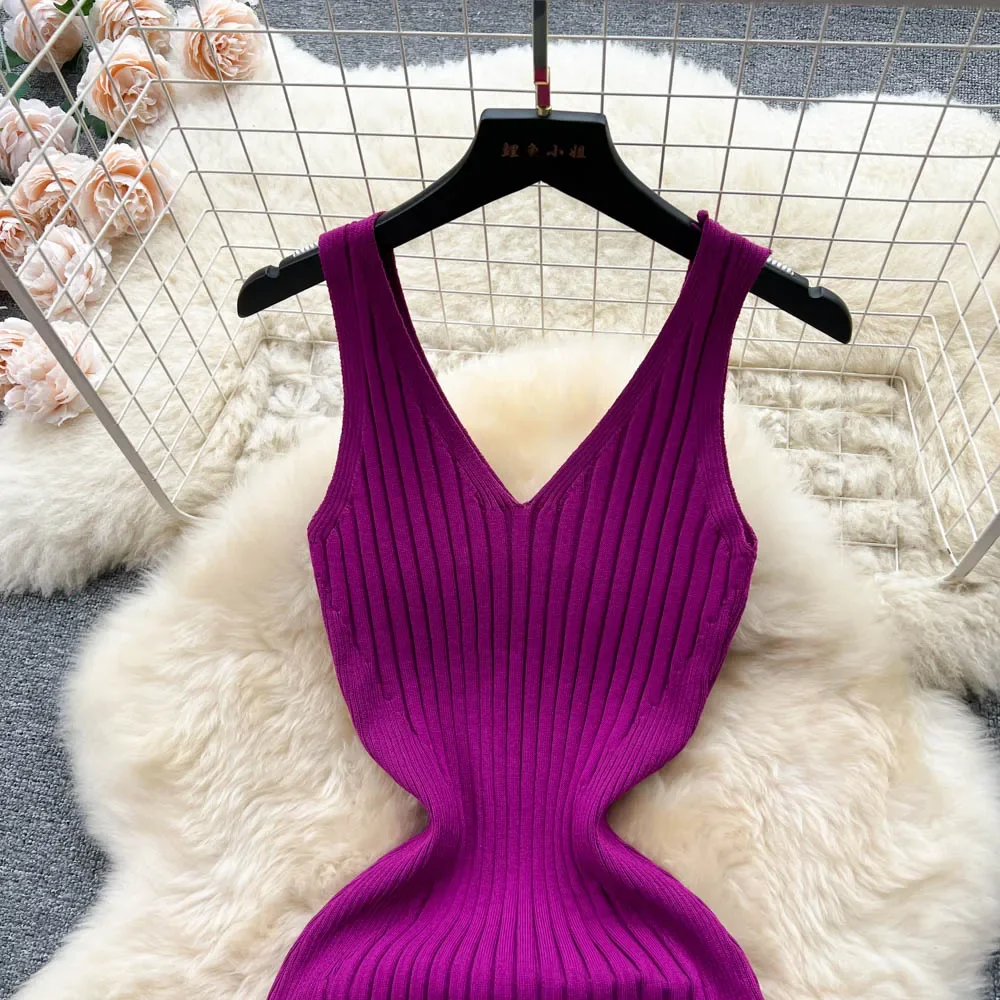 New York’s Fashion Women Dress Sexy Package Hips High Split Knitted Dress Chic Ribbed Sleeveless Bodycon Long Dress Streetwear Lady Outfit