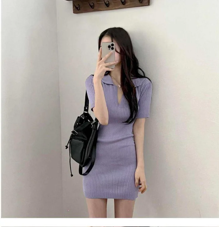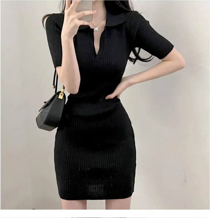 New York’s Fashion Women New Short Sleeve Dress Spring Summer Knitting Female Clothes Streetwear Vacation Casual Soft Sweet Sexy Fashion Dress