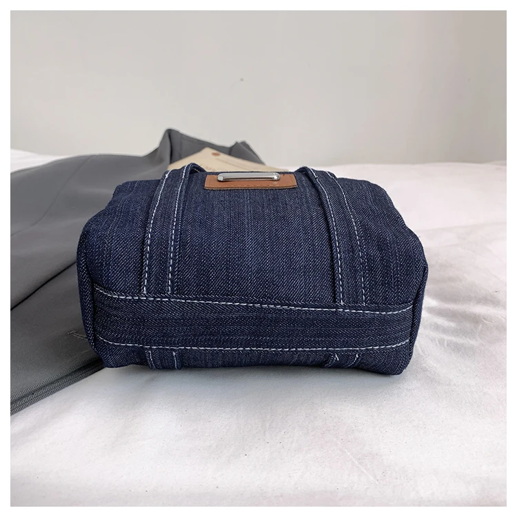 In terms of material: We use high-quality denim fabric, which has a slight distressed texture. This not only restores the retro style of denim items but also has the characteristics of being durable and sturdy. Even when bumped against tables or chairs during daily commutes, or when exposed to debris during outings, it is unlikely to leave obvious scratches or stains. With a gentle wipe, it can be restored to its original cleanliness. After long-term use, the shape remains plump and upright. The denim fabric has an appropriate density and is lighter in weight, so it won’t cause pressure on the shoulders and neck when carried on a single shoulder strap. Even when packed with daily items such as mobile phones, lipsticks, keys, and power banks, the overall weight remains within a comfortable range. It won’t cause aching after long-term carrying, making it particularly suitable for shopping, commuting, and short trips.