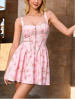 New York’s Fashion Women’s Chic Pink Floral Print Strap A-Line Backless Mini Dress Bra Cup Pleated for Summer Party Vacation Sexy Clubwear