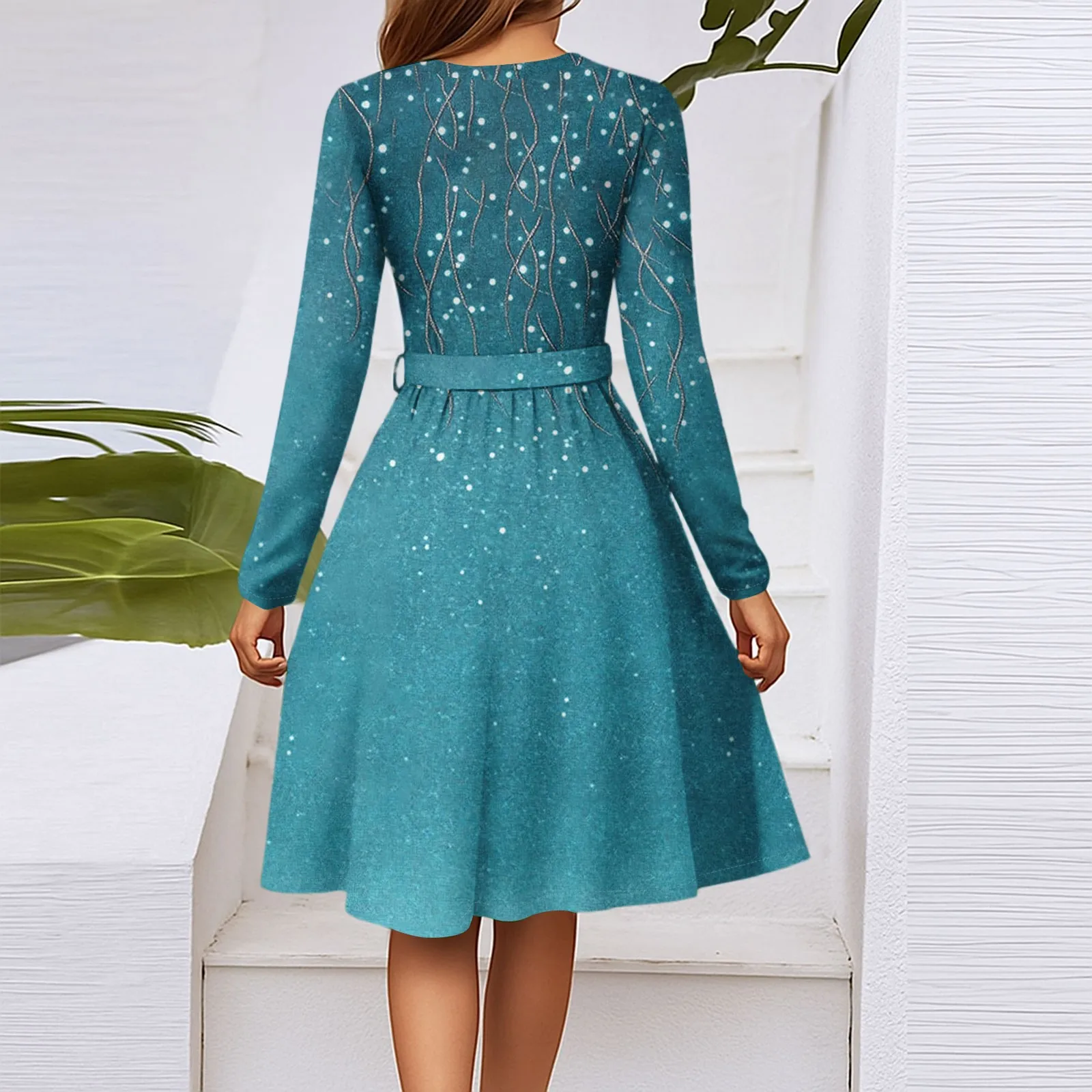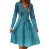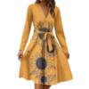New York’s Fashion Women’s Fashion Casual V-Neck Long Sleeve Waist Floral Print Midi Dress
