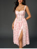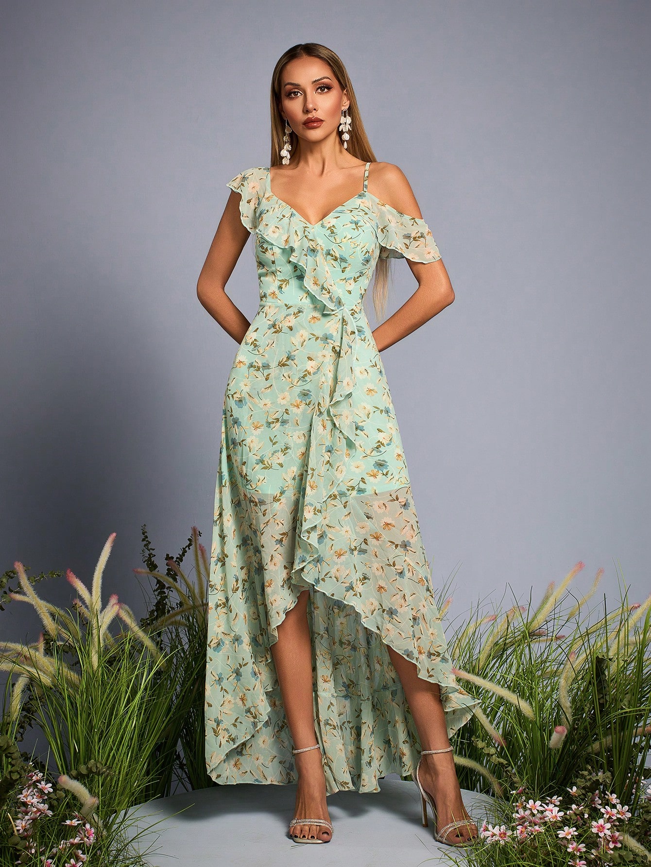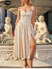 New York’s Fashion Women’s Floral Print Strap A-Line Sexy High Slit Midi Dress Backless Delicate Cutouts Summer Party Beach Holiday Dress