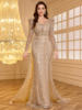 New York’s Fashion Women’s Long Sleeve Sweetheart Neck Diamond Embellished Sequined Evening Gown,Party Dress
