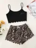 New York’s Fashion Women’s Pajamas Set Sexy Lingerie Leopard Print Sling Sleepwear V-Neck Sleeveless Top and Shorts Sets Pyjamas Homewear