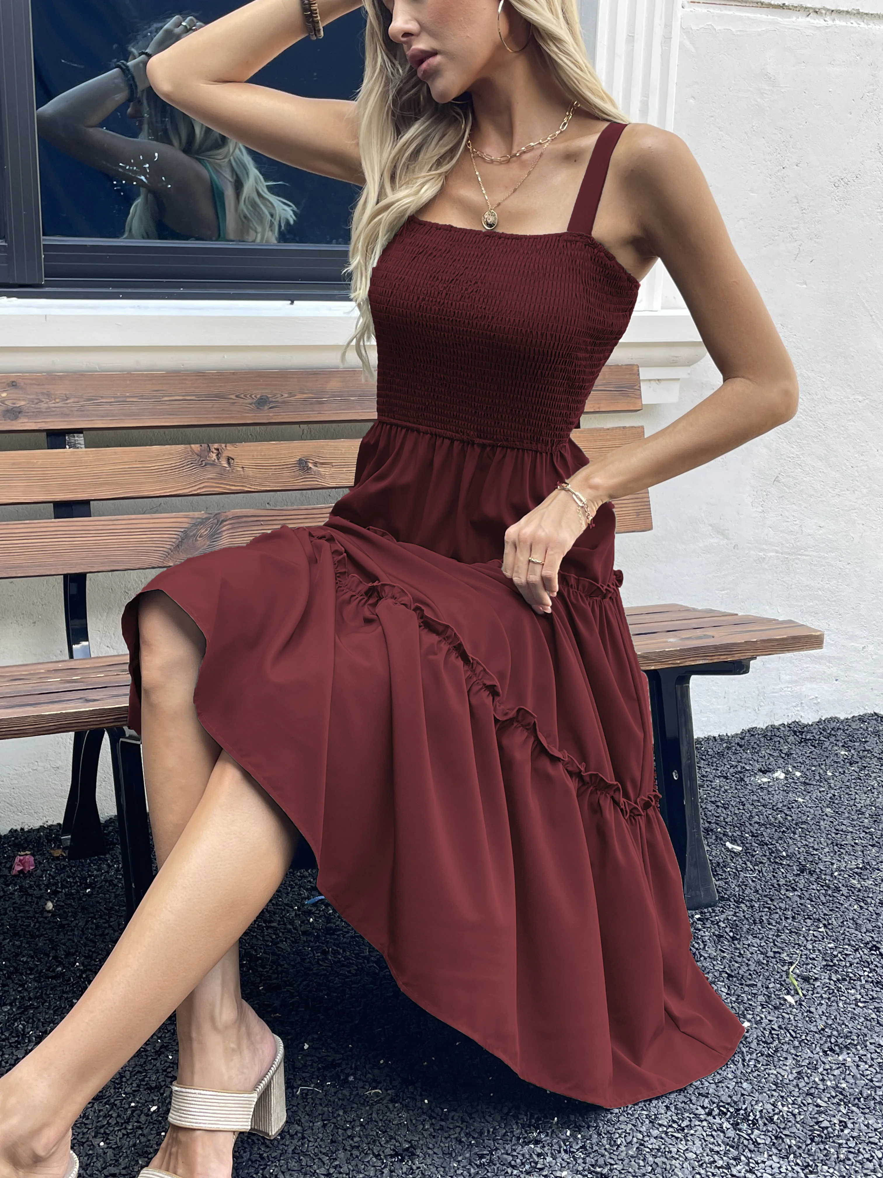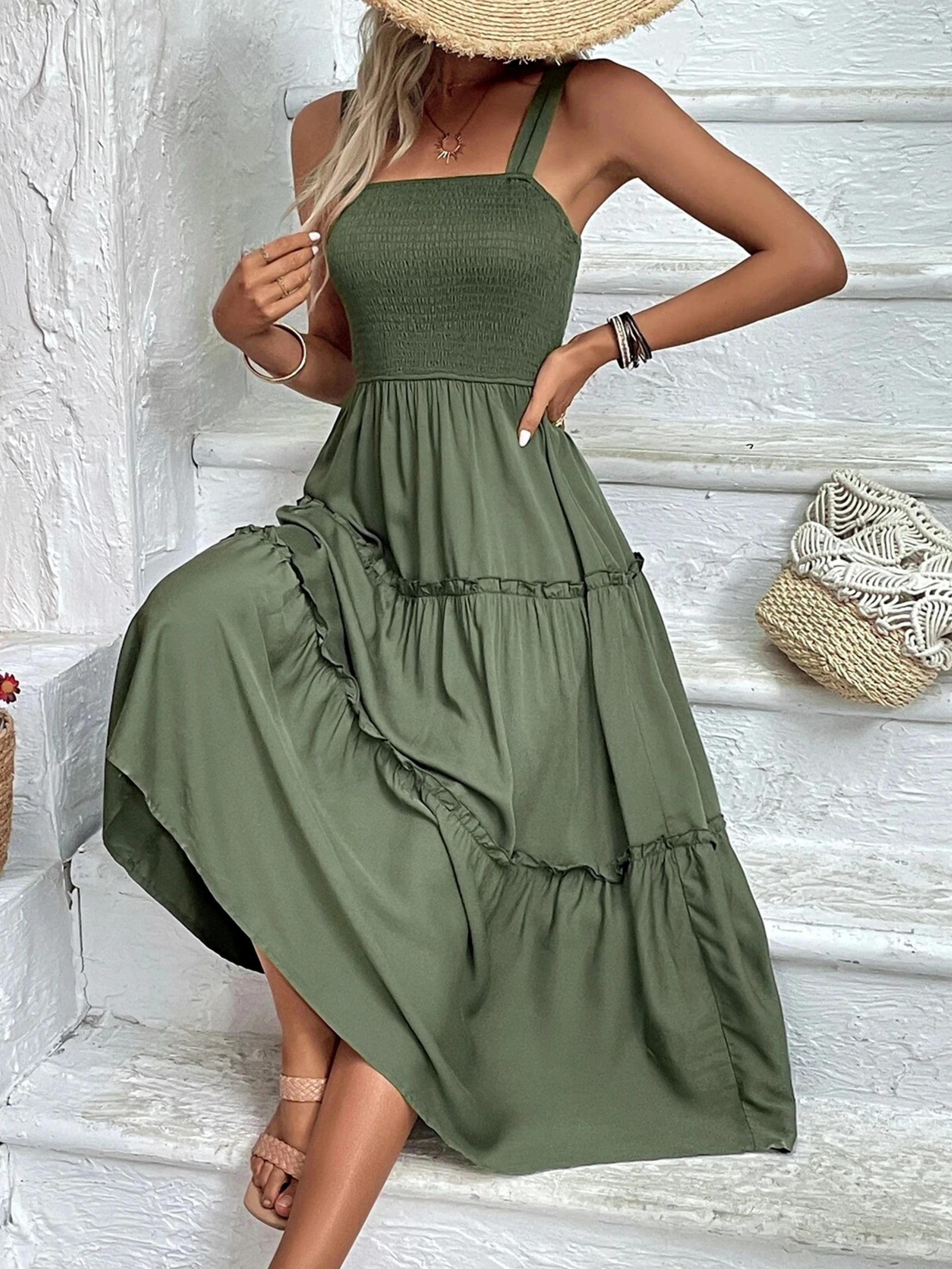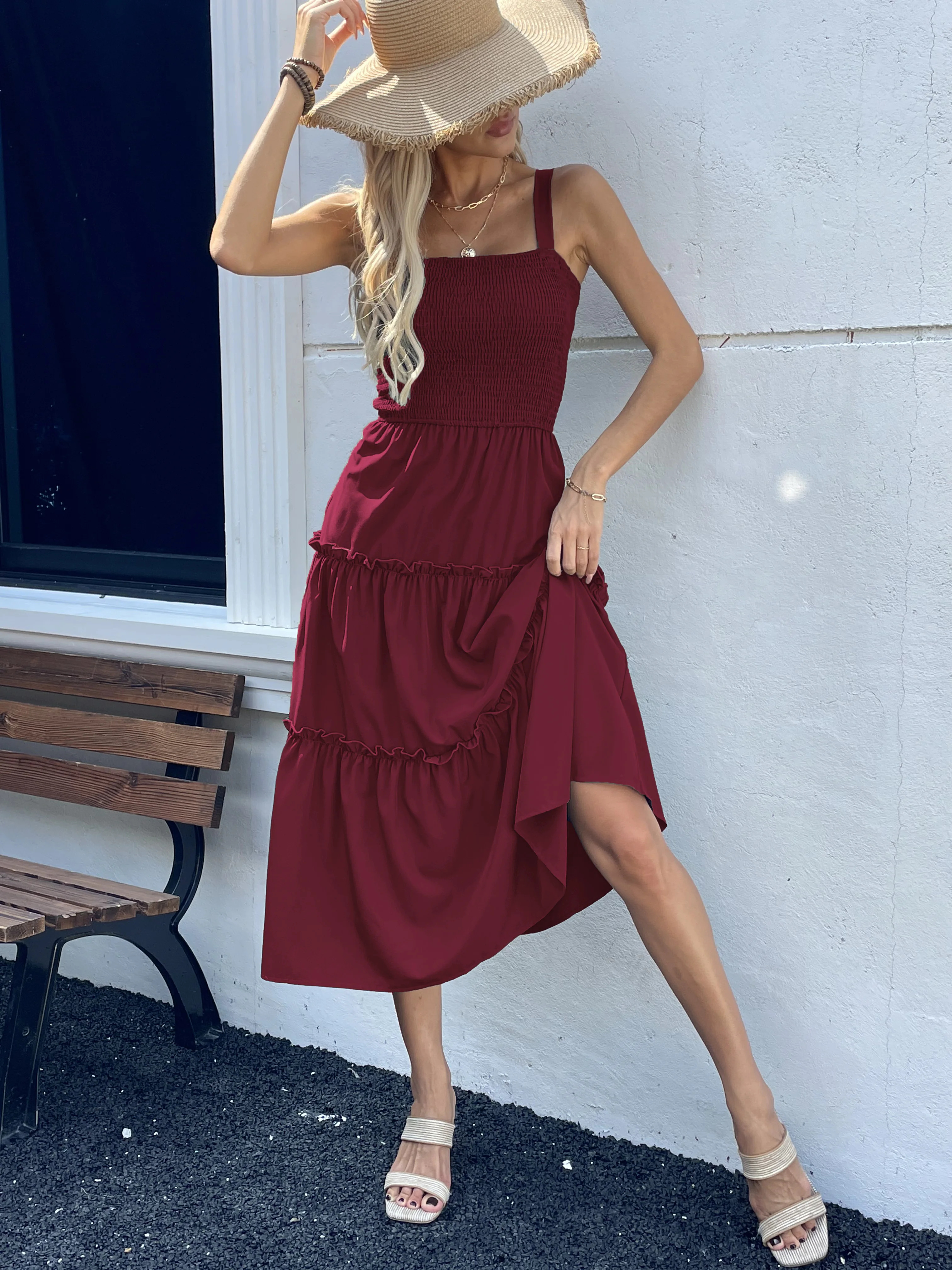 New York’s Fashion Women’s Ruched Bust Ruffle Hem Sleeveless Slip Dress – Summer Sexy Bodycon Tube Strap Dress for Party Beachwear