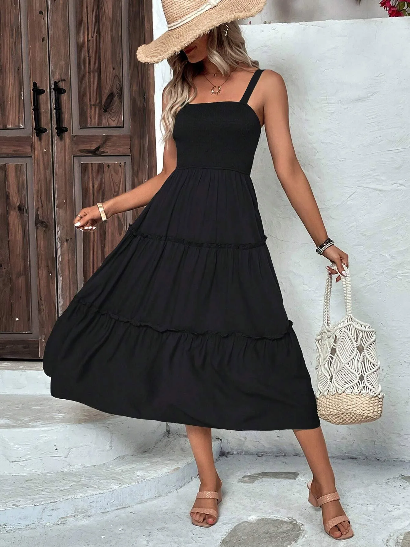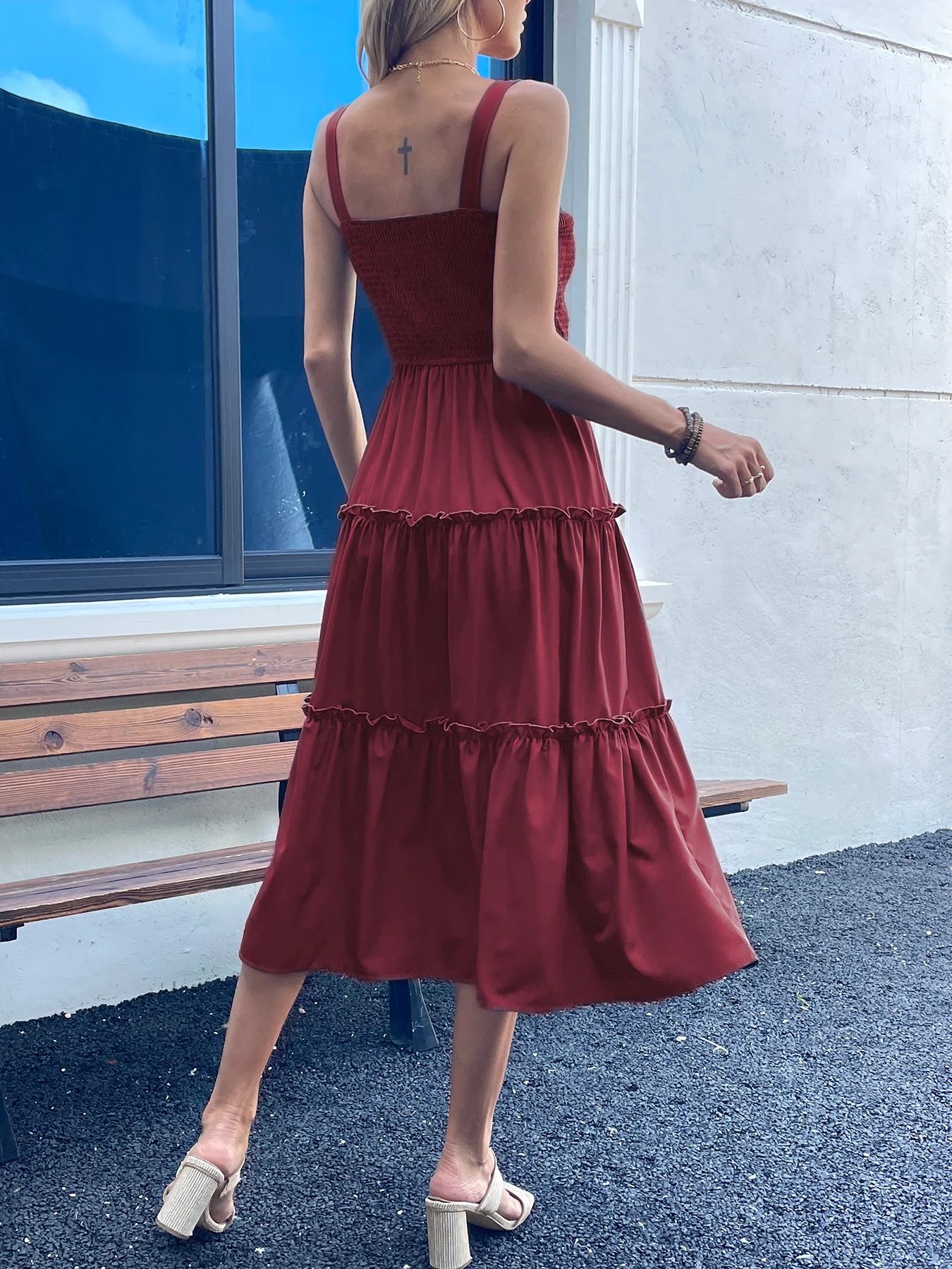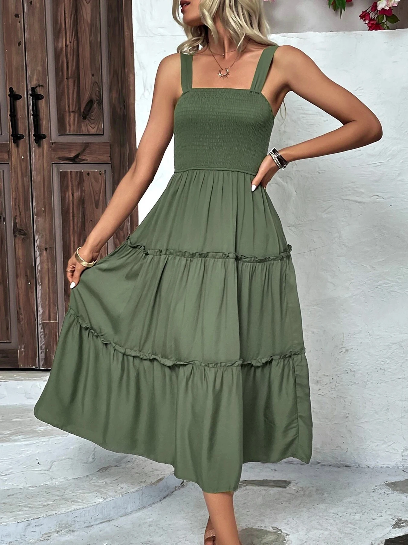 New York’s Fashion Women’s Ruched Bust Ruffle Hem Sleeveless Slip Dress – Summer Sexy Bodycon Tube Strap Dress for Party Beachwear
