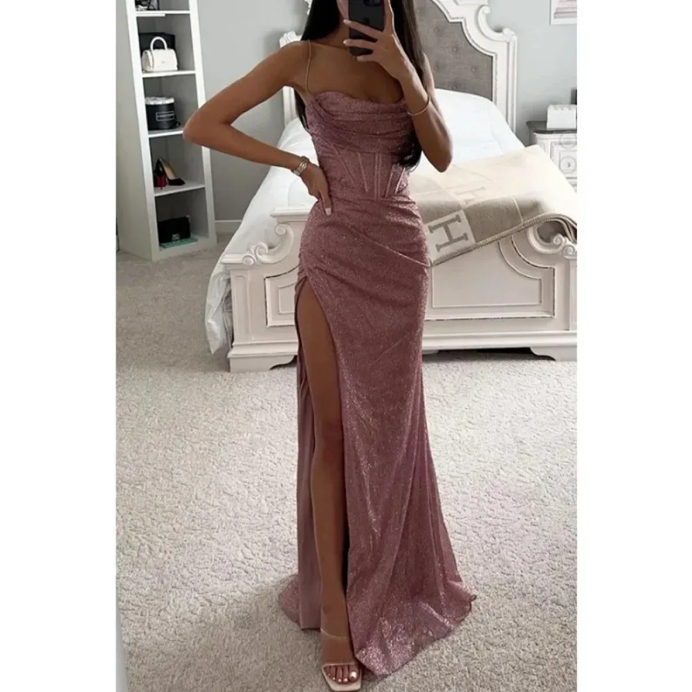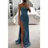 New York’s Fashion Women’s S-XL size Party Fashion Suspender Dress with A Straight Neckline Sleeveless Solid Color Slim Fit Slit Casual Long Dress