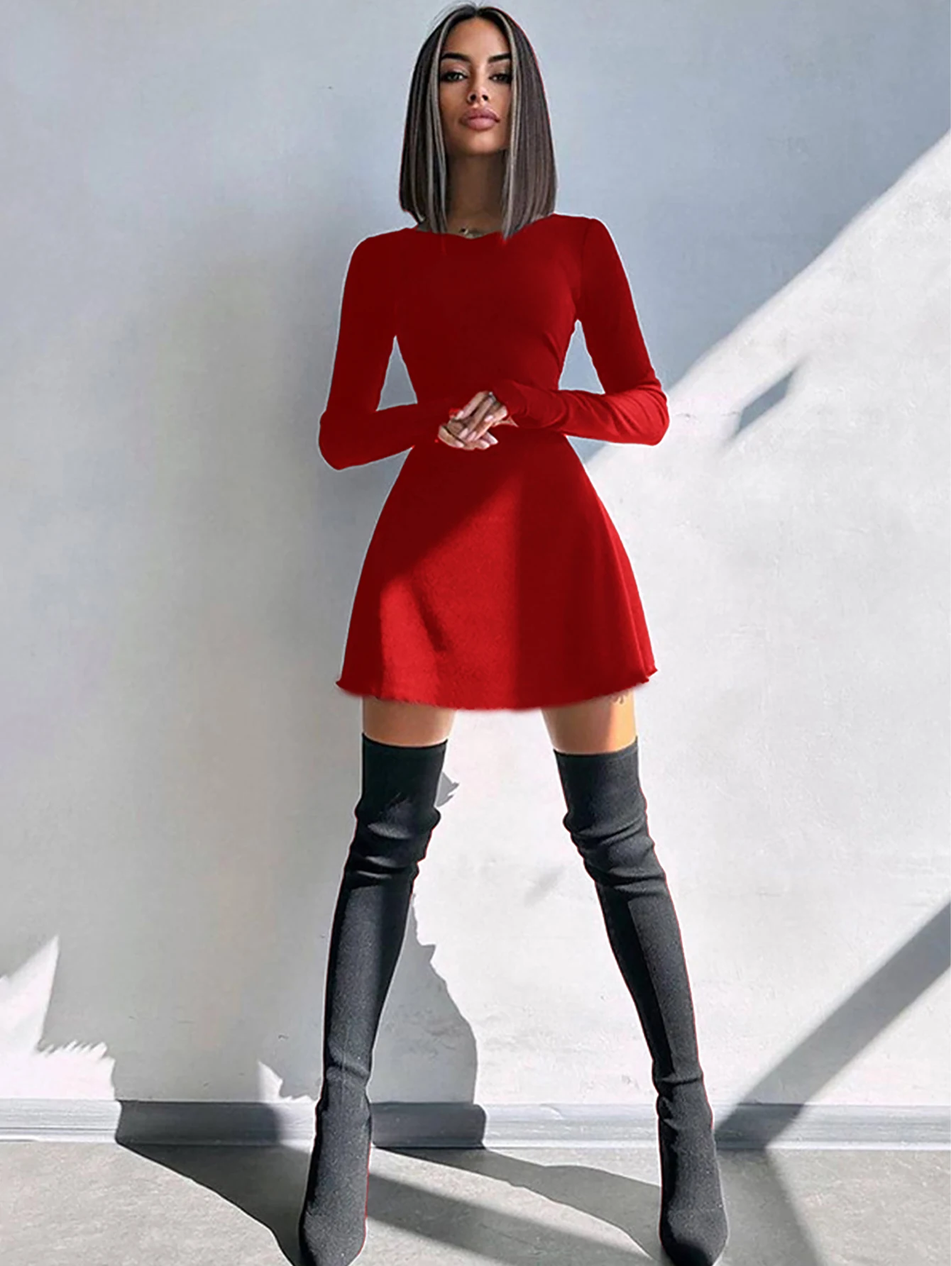 New York’s Fashion Women’s Sexy Club Long Sleeve Mini Bodycon Dress Suitable For Nightclub, Family Party, Vacation, Leisure