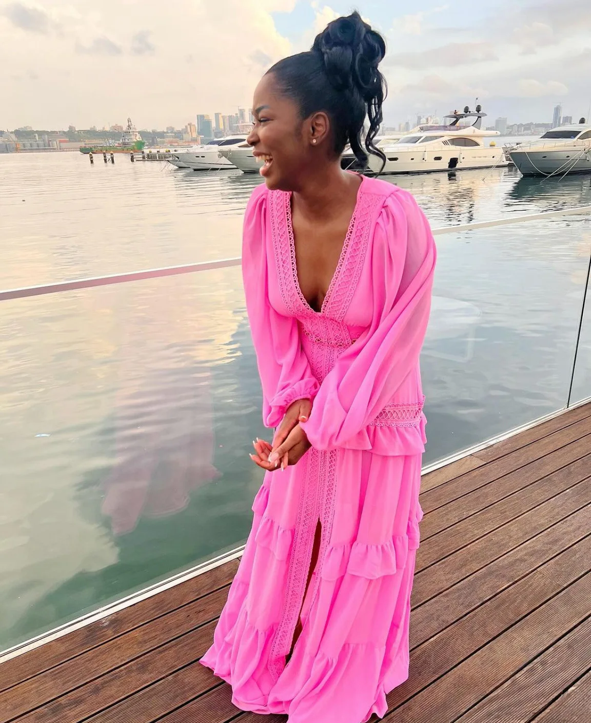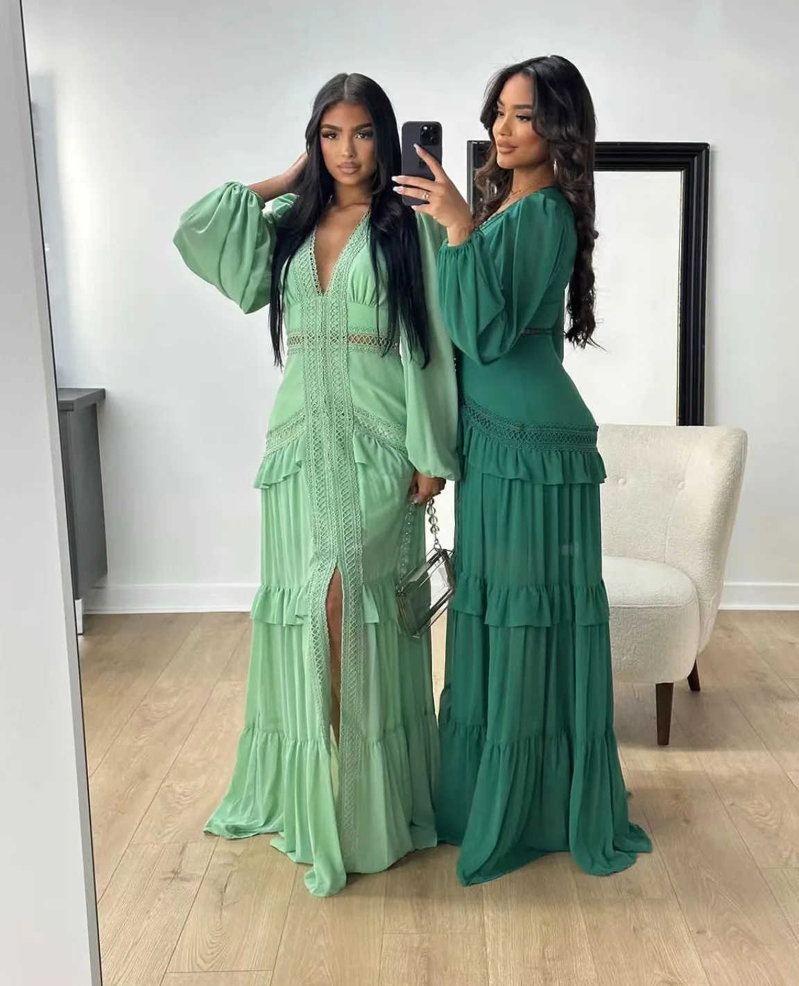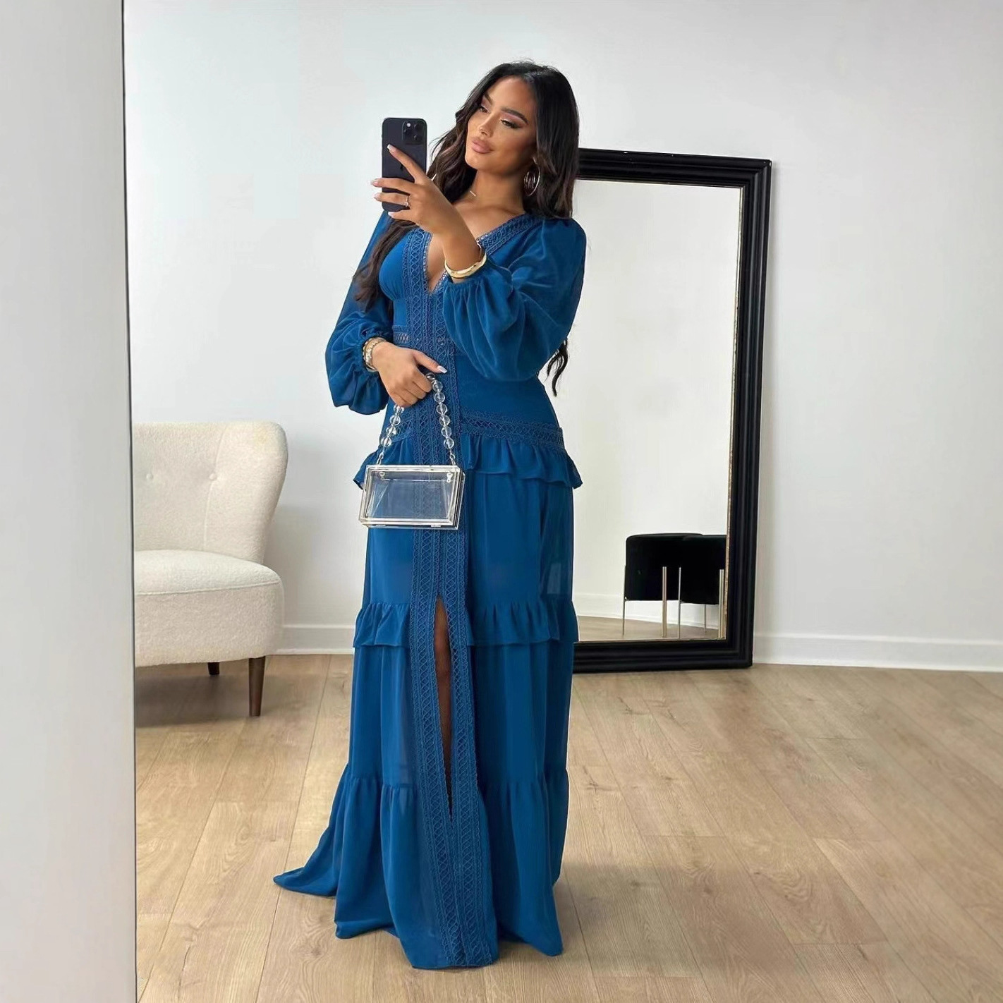 New York’s Fashion Women’s V-Neck Long Sleeve Dress Elegant Wedding Guest Dresses Maxi Night Out Dress