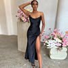 Summer Sexy Women's Sleeveless and Ankle-Length Solid Slim-Fitting Strappy Dress with Hip-Wrapping and Side Slit for Party