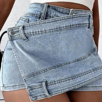New York’s Fashion 2024 Women Fashion Denim Mini Skort Rave Street Wrap Stretch Irregular A-Line Skinny Cargo Jean Shorts Mujer