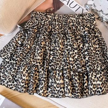 New York’s Fashion Chiffon Leopard Mini Skirts Women Y2k Retro Summer Elastic Waist Stylish Streetwear Korean Style Temperament Cake Faldas Tender