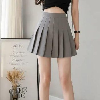 New York’s Fashion 2025 Summer New Women Slim Solid Color Pleated Short Skirt College Style Pure Want To High-waisted Skinny-proof A- line Clothing