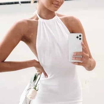 New Yorks Fashion Women Sleeveless Backless Mini Skirt Dress 2023 Y2K Summer Bodycon Hang Neck Elegant Sexy Outfits Ladies Party Club Sundress
